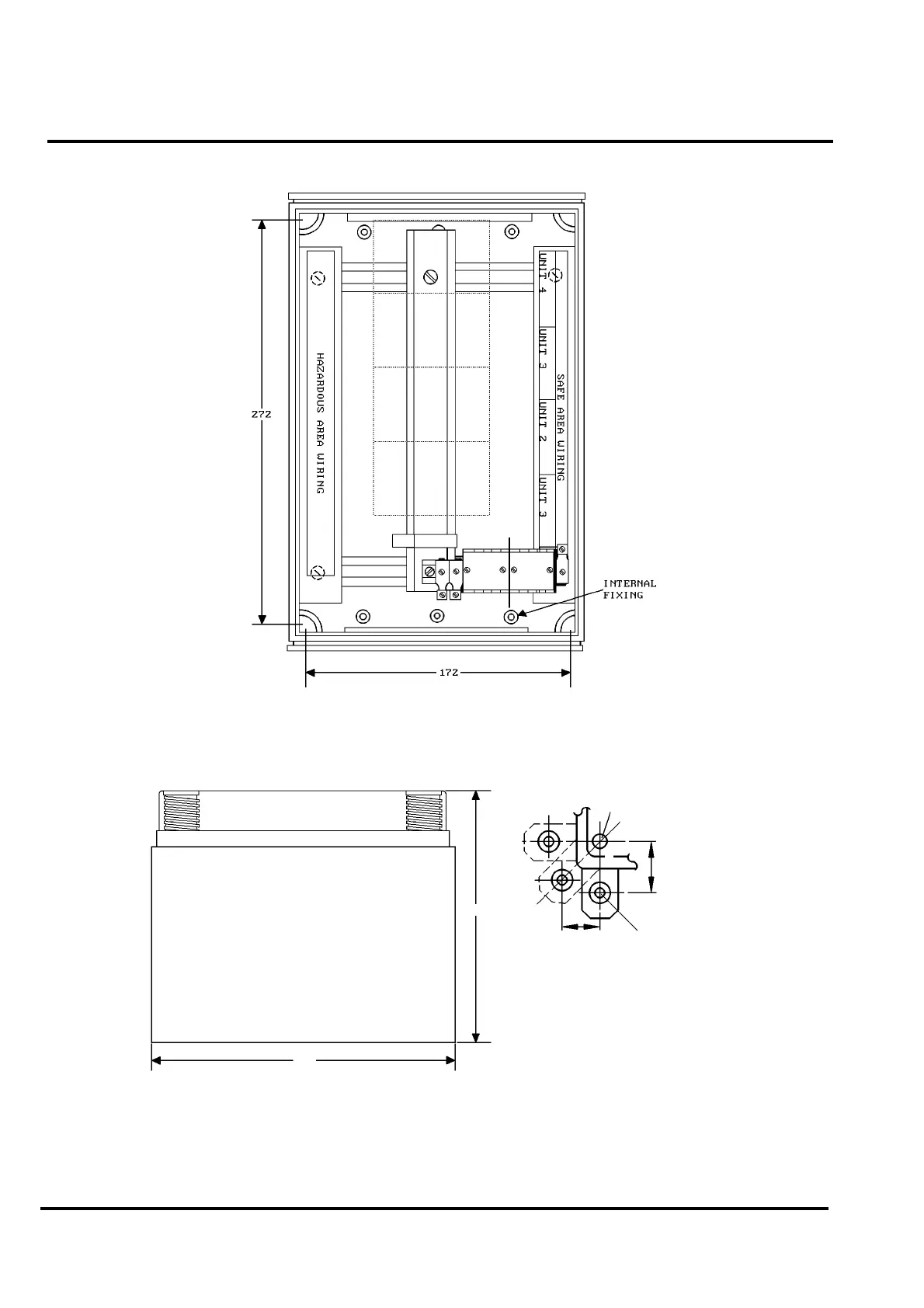Fig. 2 Overall and Fixing Dimensions for UC4 8-Way Housing- for I.S.Sounder Driver/EXI800 MX Loop Interface/