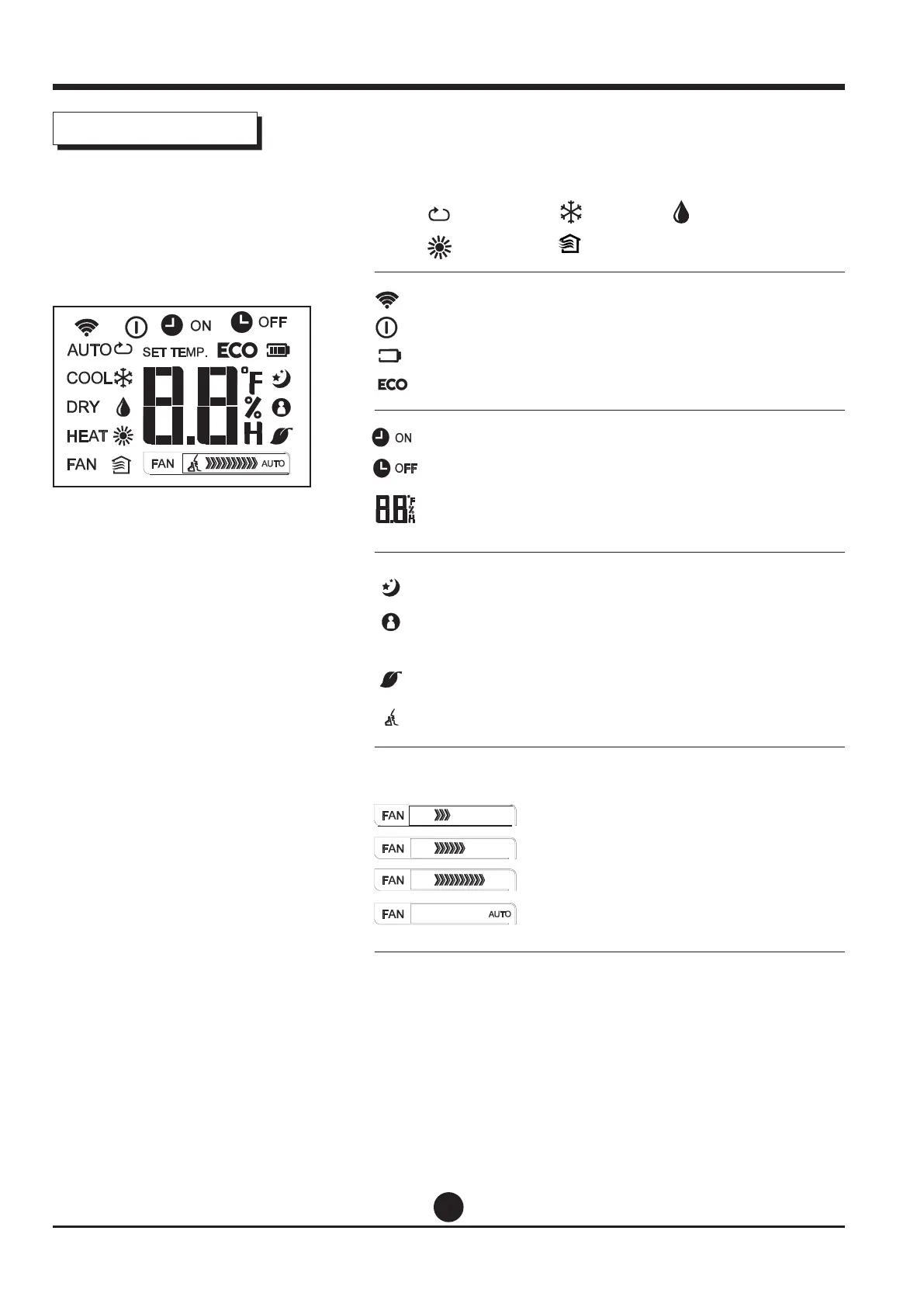 Tycoon RG57A3/BGEF - LCD Indicators and Fan Speed; Mode Display Indicators; Fan Speed Indications