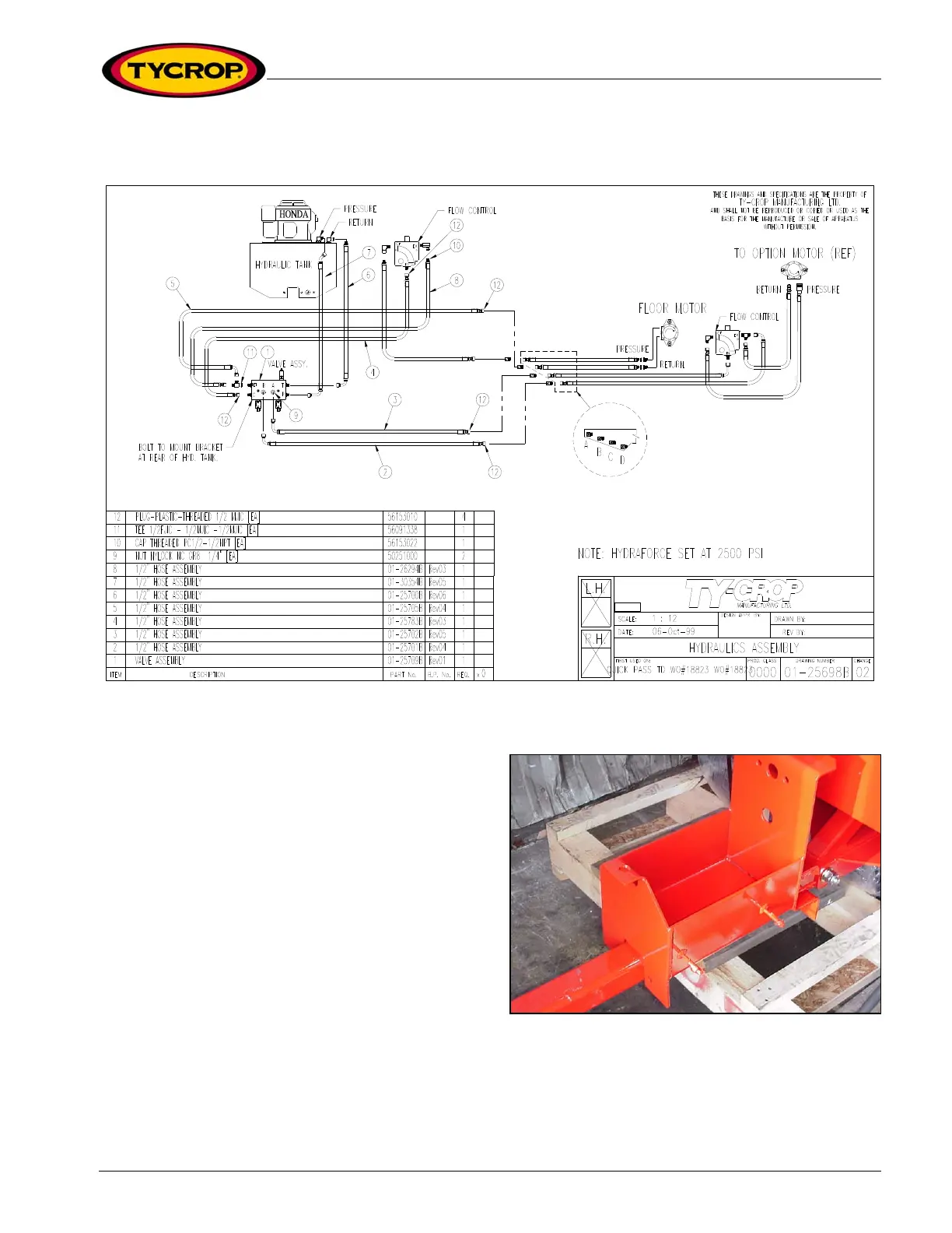 Figure 13: Schematic of hydraulic connections for Honda engine