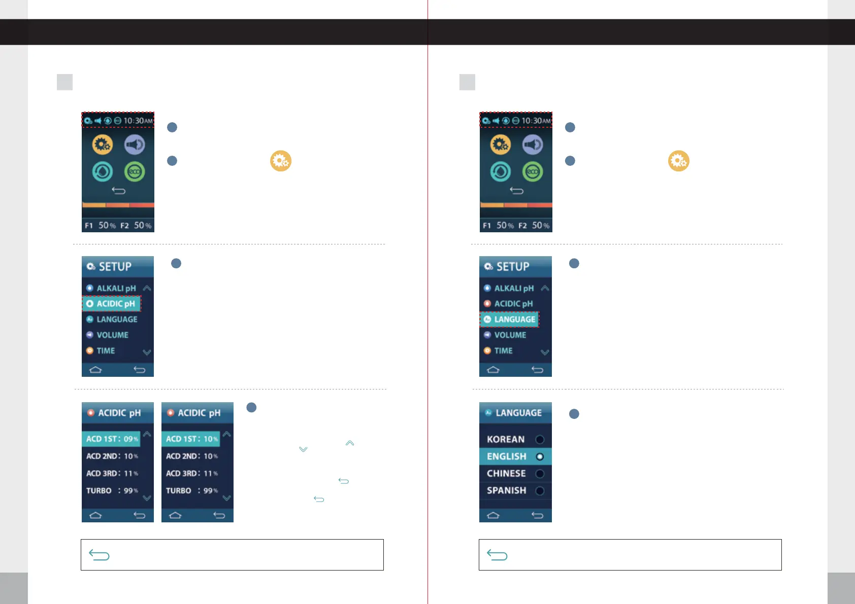 Push the RETURN icon for the previous menu screen. Voice says: “