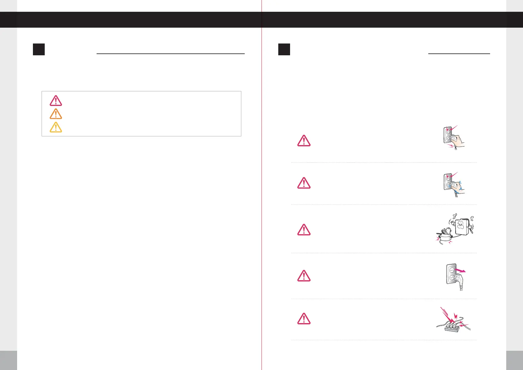Do not pull the power cord. Never touch the power