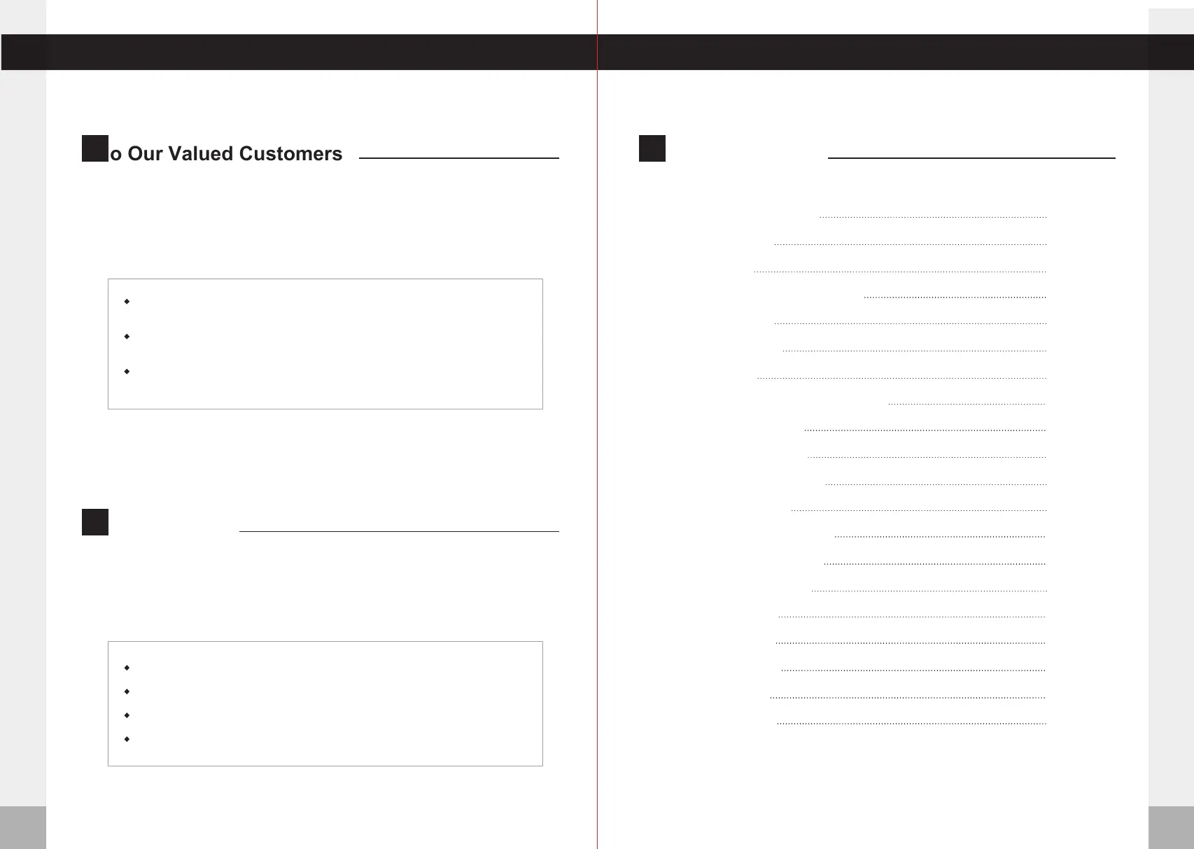 To Our Valued Customers Table of Contents