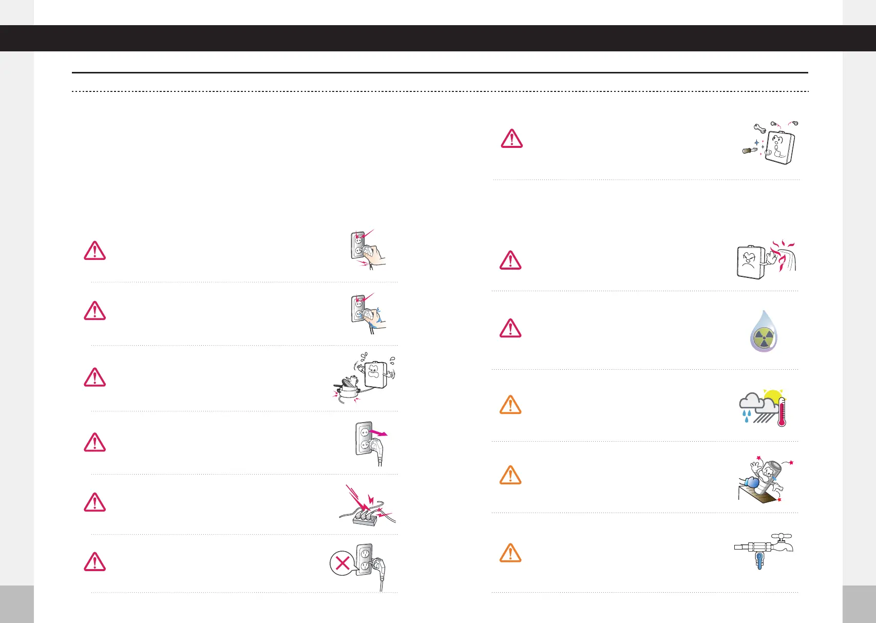 Never touch the power cord or the power outlet