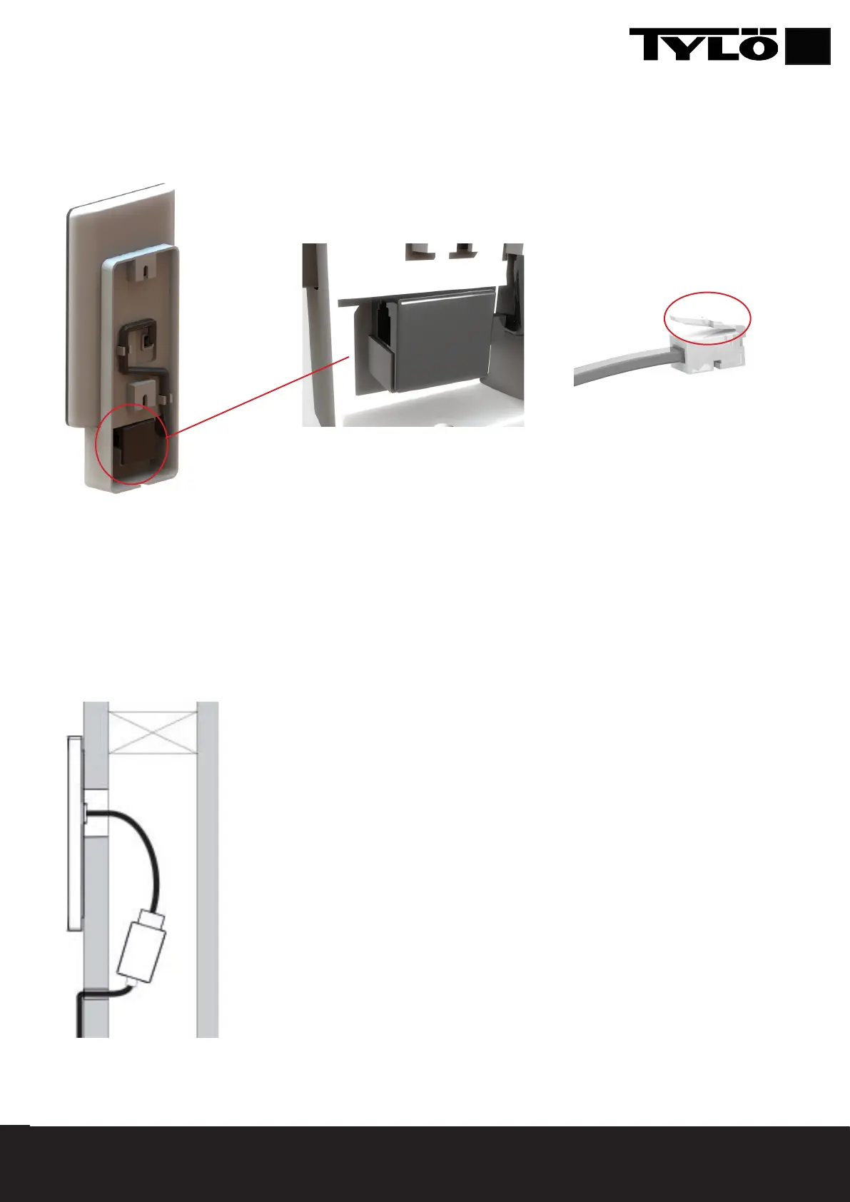 (patrząc z dołu, element blokujący powinien znaleźć się z lewej strony). Zamontuj panel na ścianie. Do podłączenia