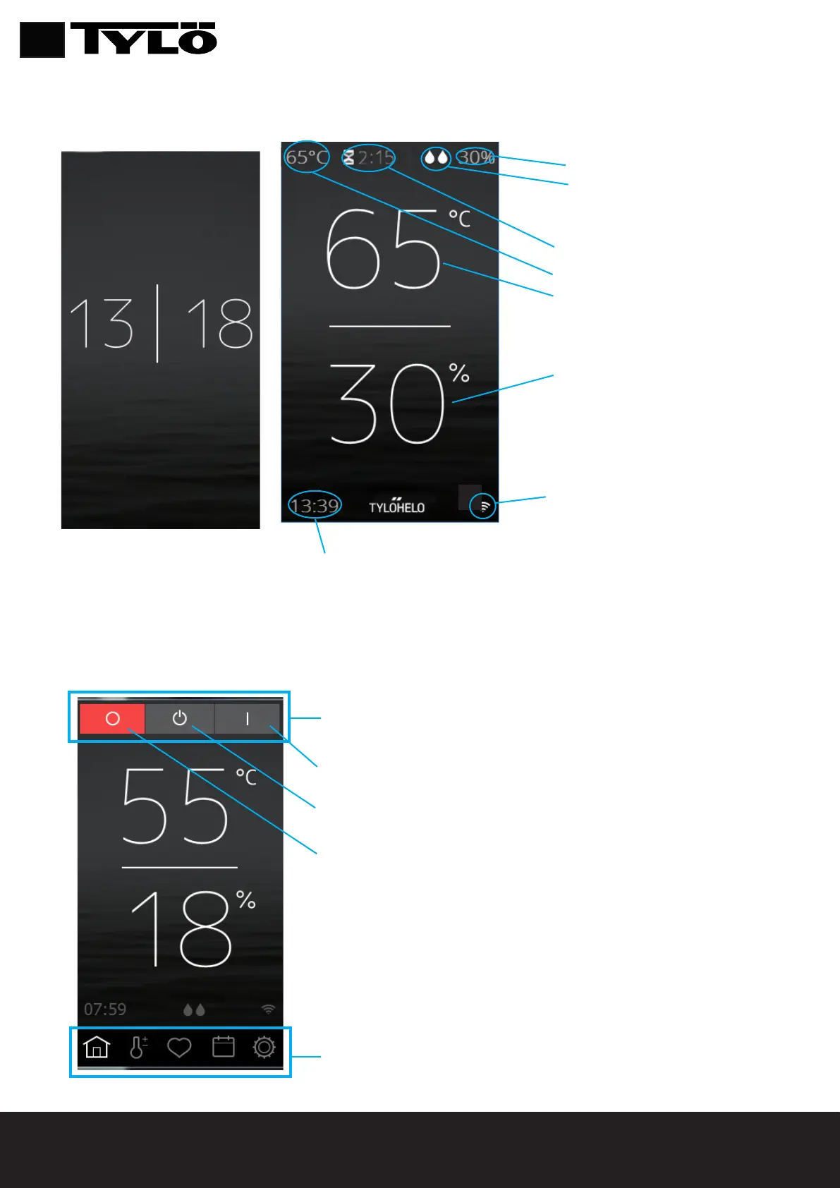 главного экрана. Кнопки действий используются для запуска и остановки нагревателя. Также