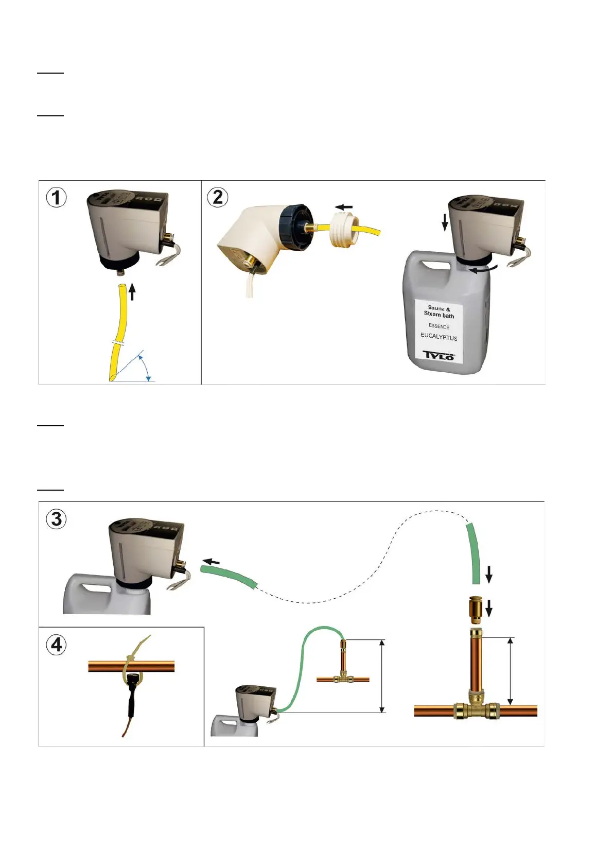 be min. 10cm! The connection to the steam pipe must not allow the essence to run back into the steam generator tank.
