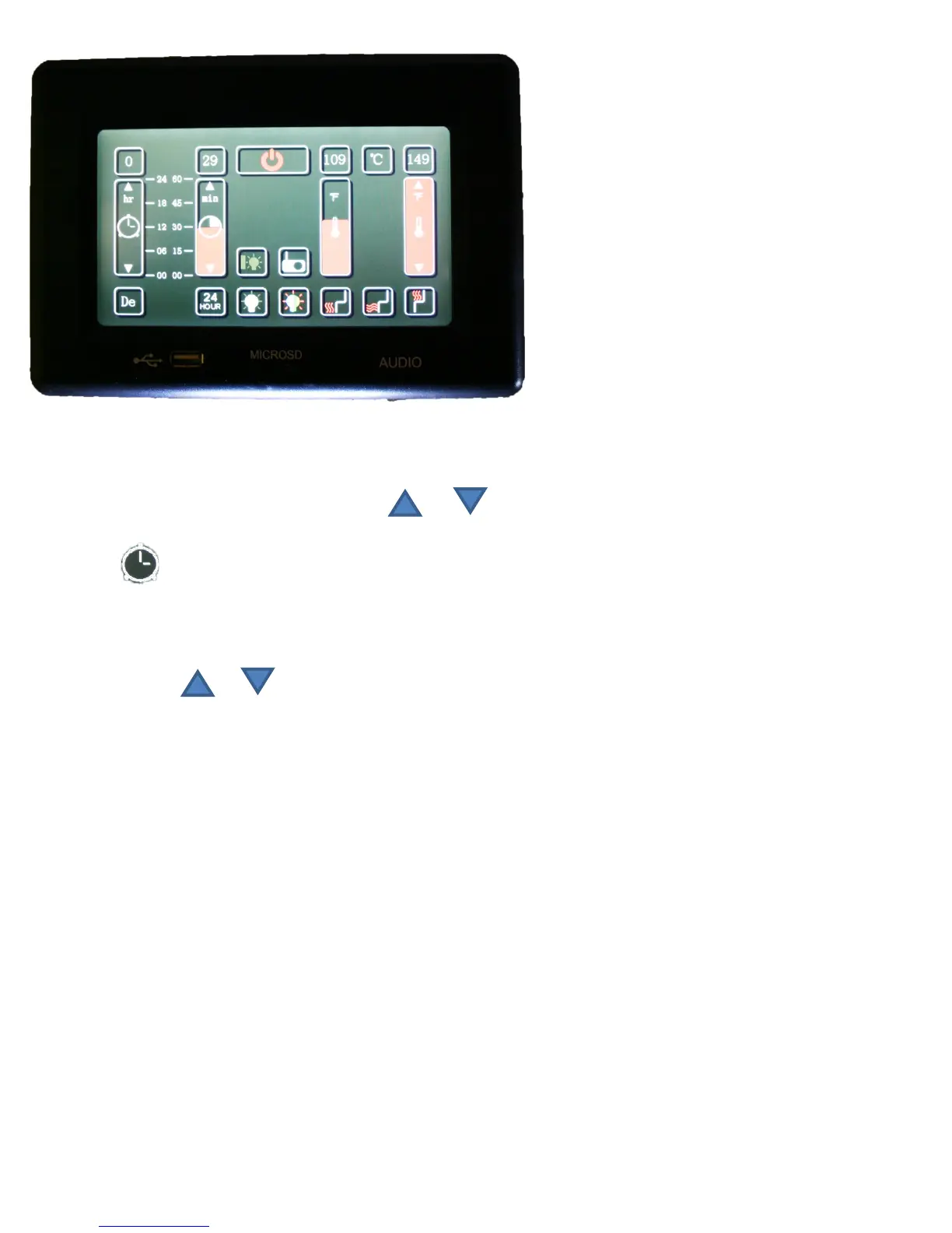Timer 2: Use this function with a pre-setting of up to 24 hours to set the sauna to come on later.
