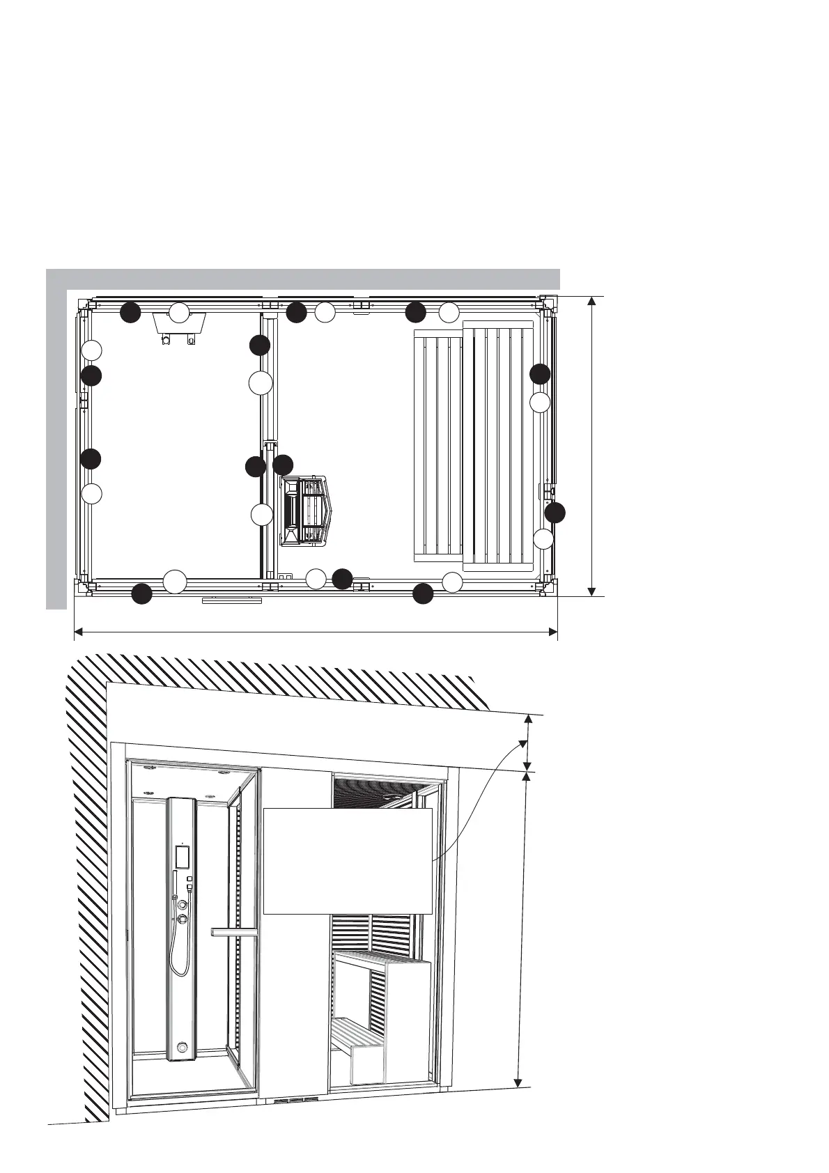 Die Abbildung zeigt eine beispielhafte Montage der Kabine. Die Montageanleitung bezieht sich auf Layout 1. Auf der