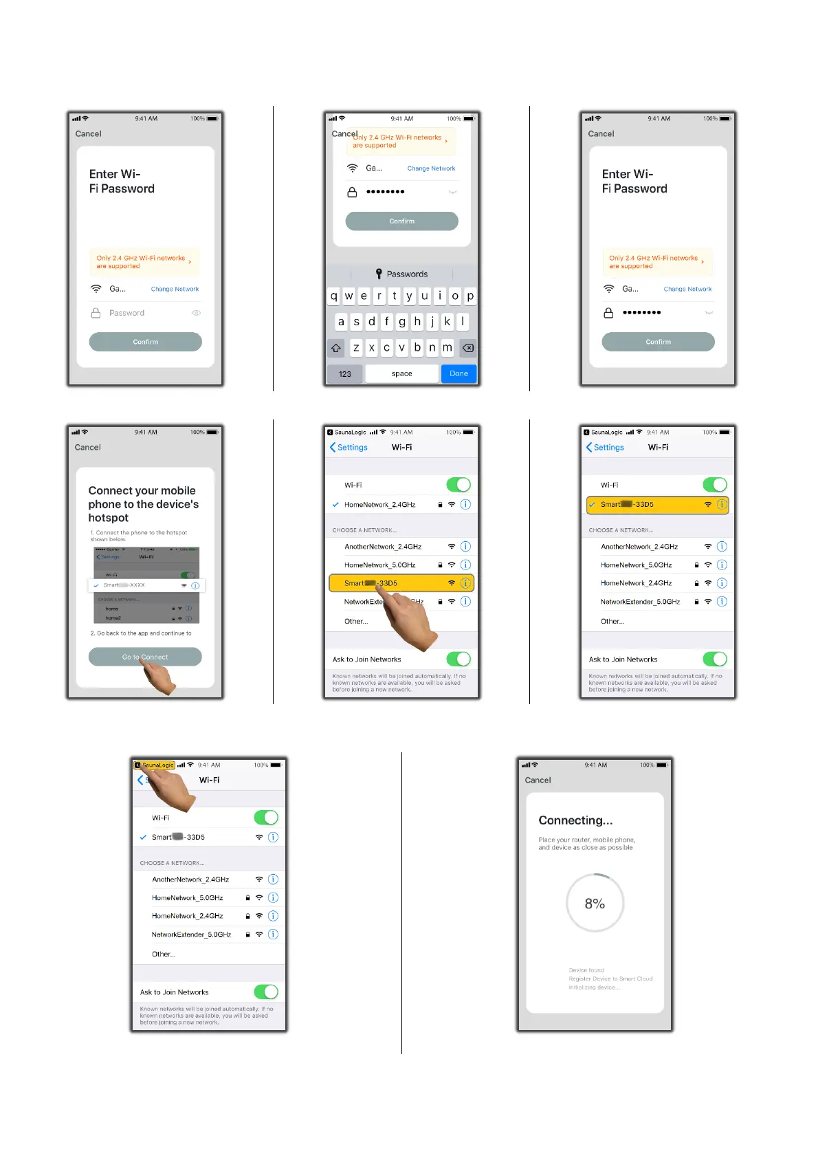 8) Connect your mobile phone to the IR2 Control’s hotspot that is identified in the SaunaLogic App.