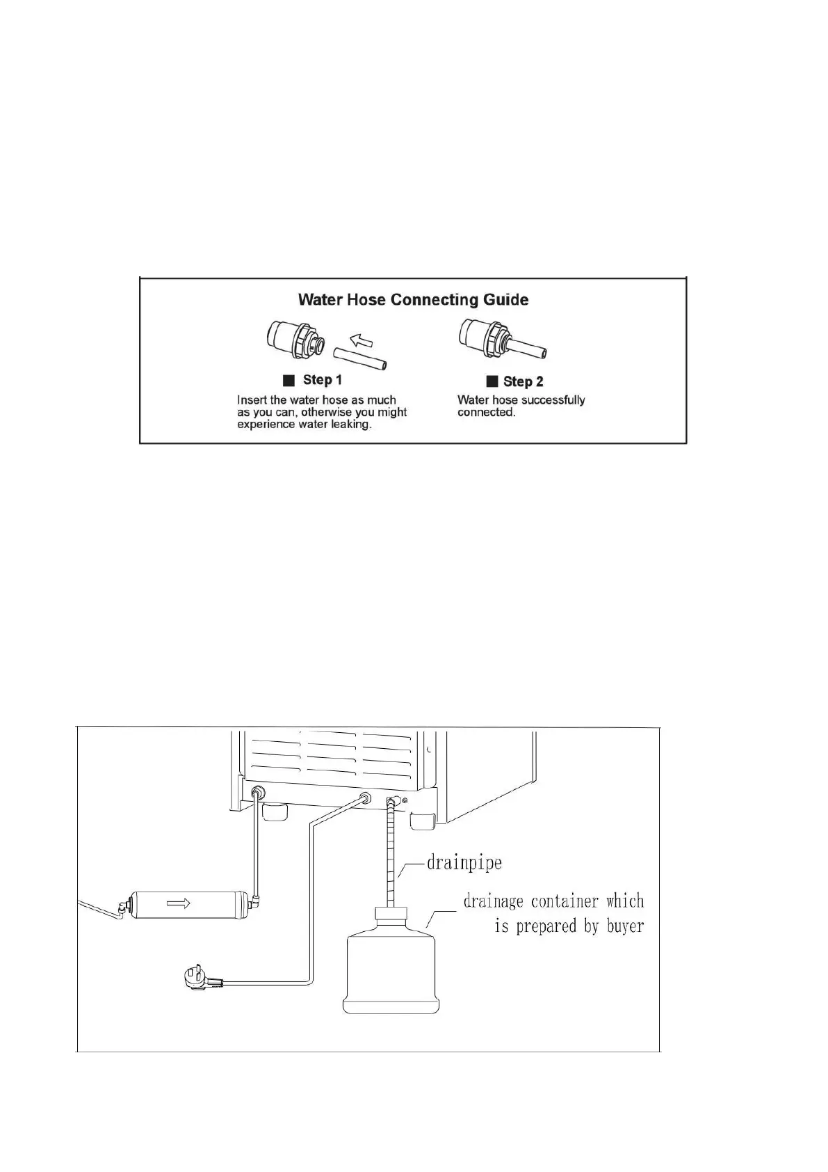 Warning: Because the ice in the inner tank will melt, drain pipe must be connected before
