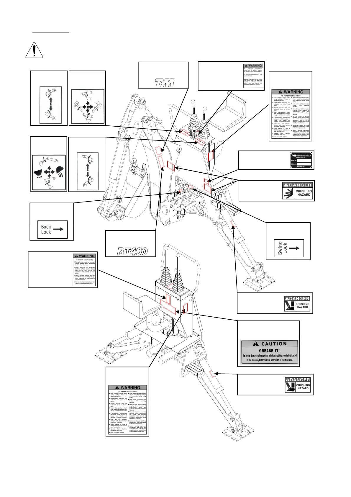 Read and refer to the Tractor Operation Manual or Decals on the Tractor. and Backhoe