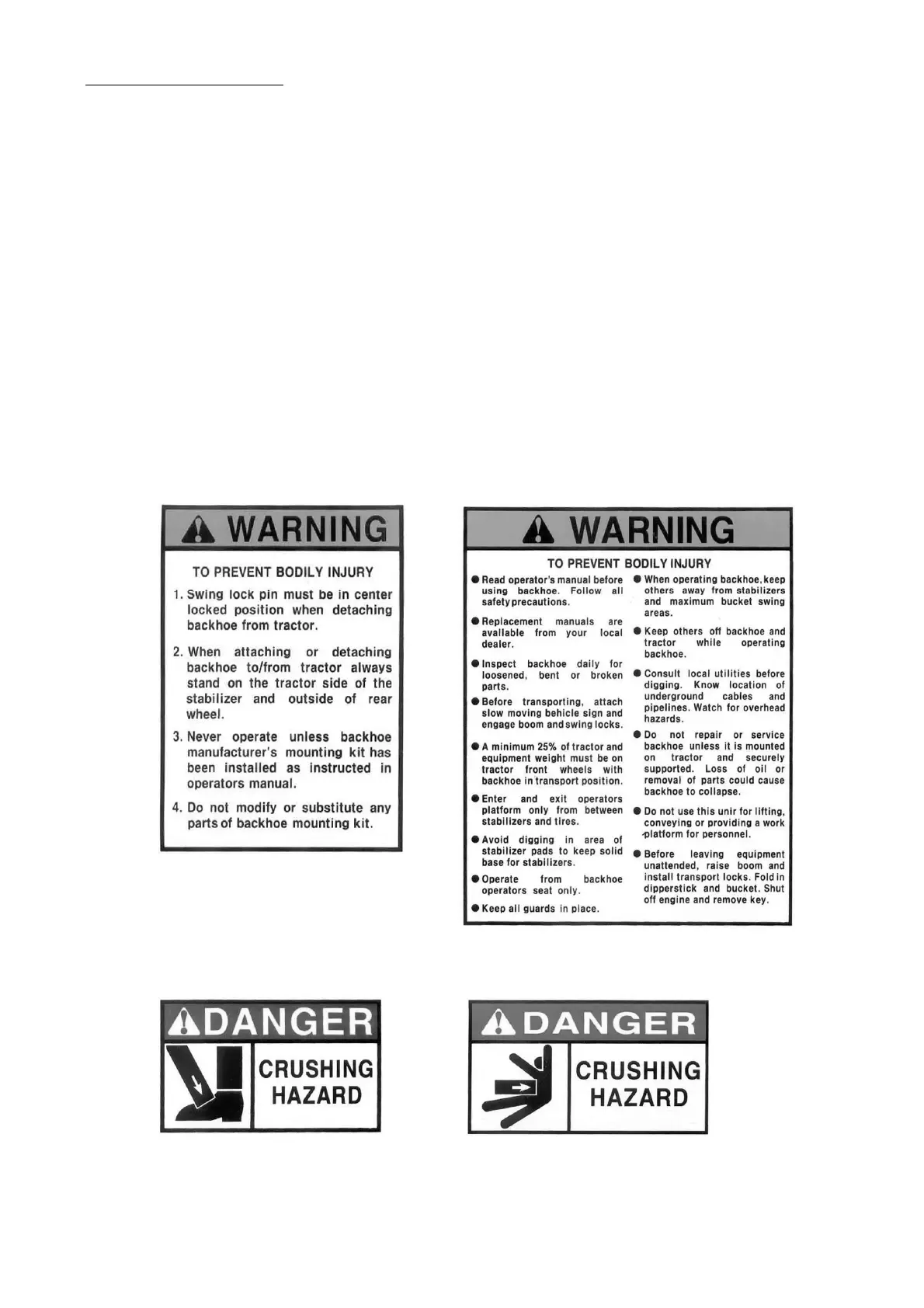 Important: Warning decals are visible when getting on backhoe. Refer to the left and right hands