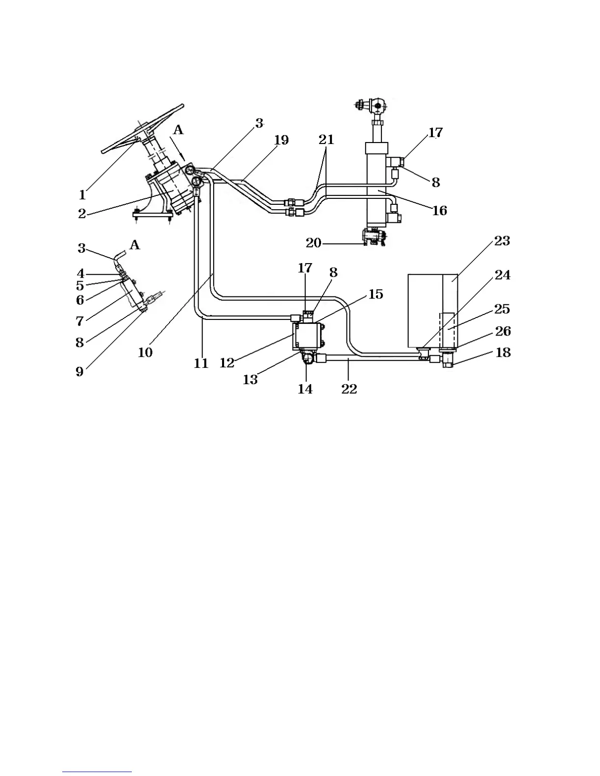 21. Steering cylinder tube 22. Steering gear oil pump inlet tube