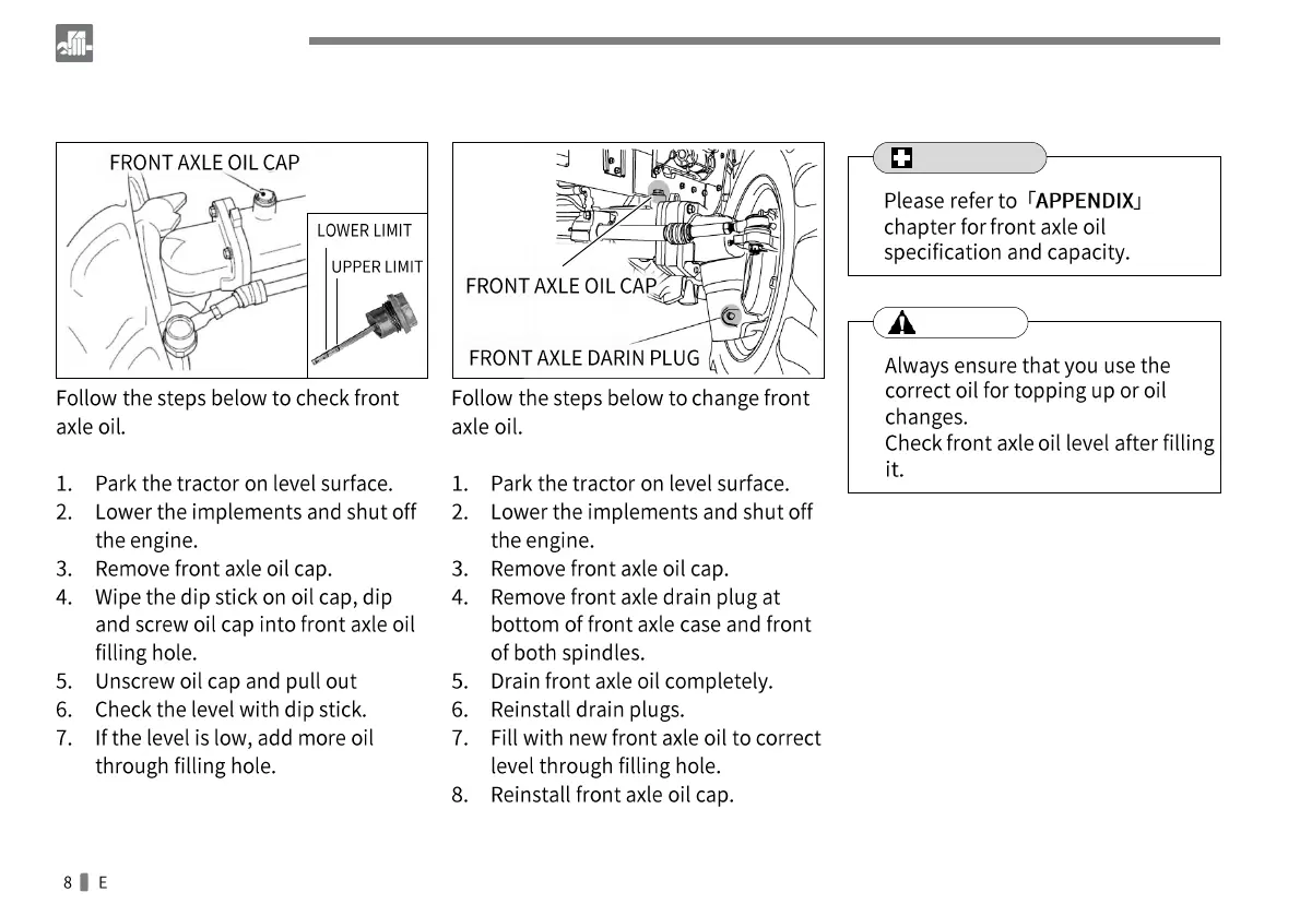FRONT AXLE OIL CHANGE FRONT AXLE OIL CHECK