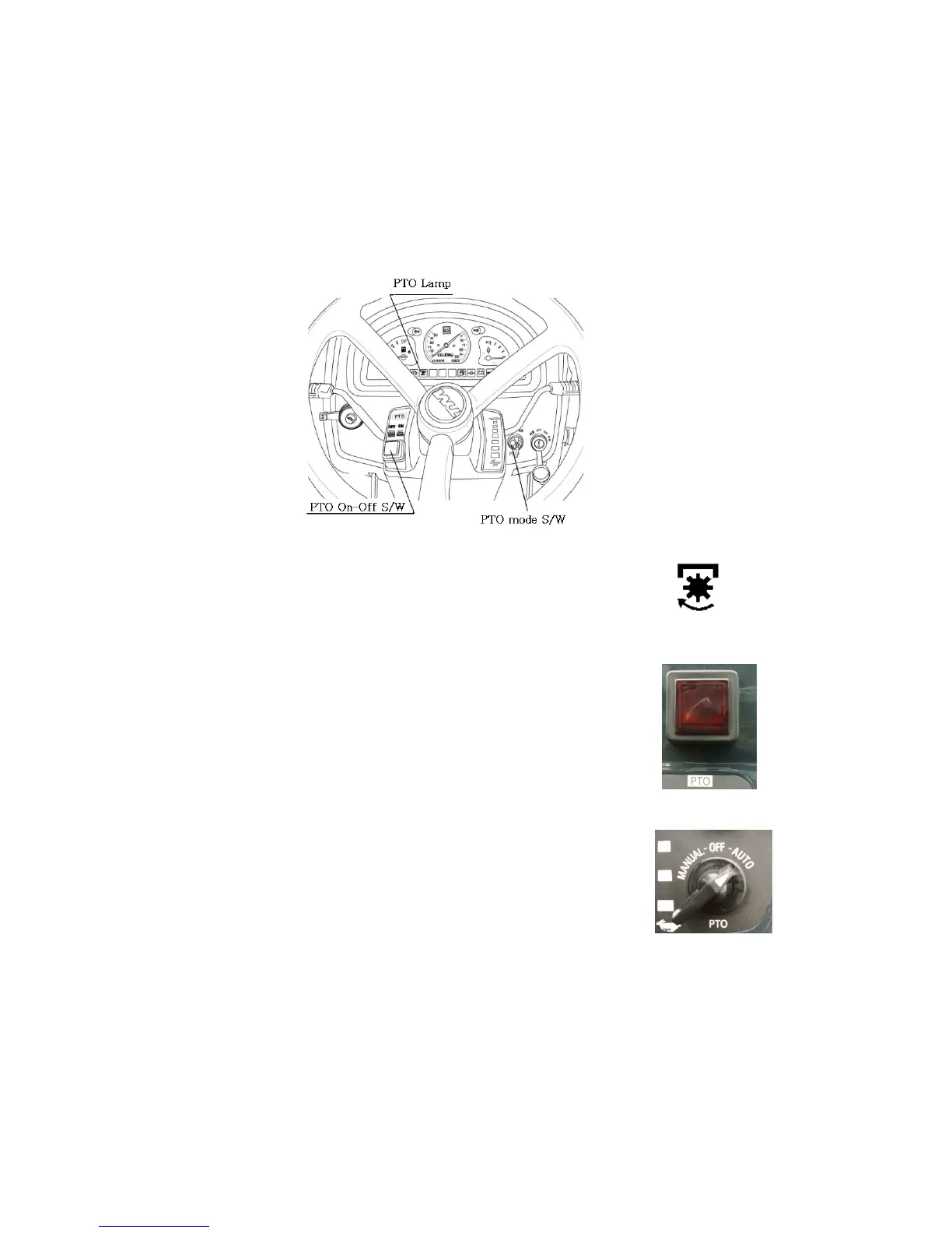 Auto) positions of the PTO control switch with the PTO ON/OFF switch in the on