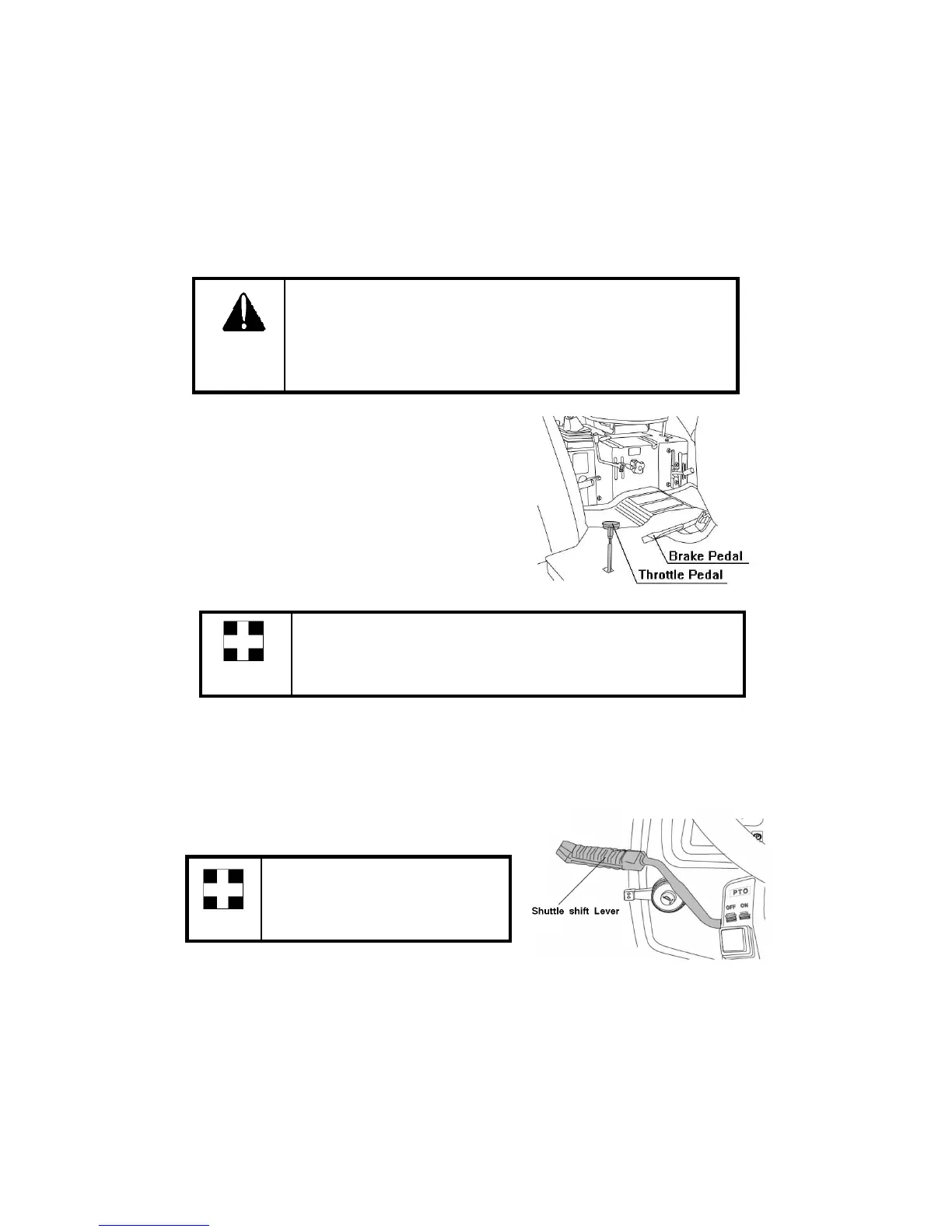 Right and left brake pedals are provided to assist in turning the tractor in the field.