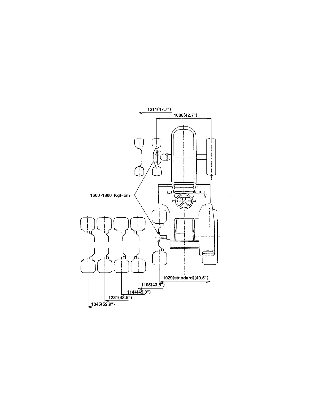 As some models of TYM are front wheel assist the front track can be set in 2 position.