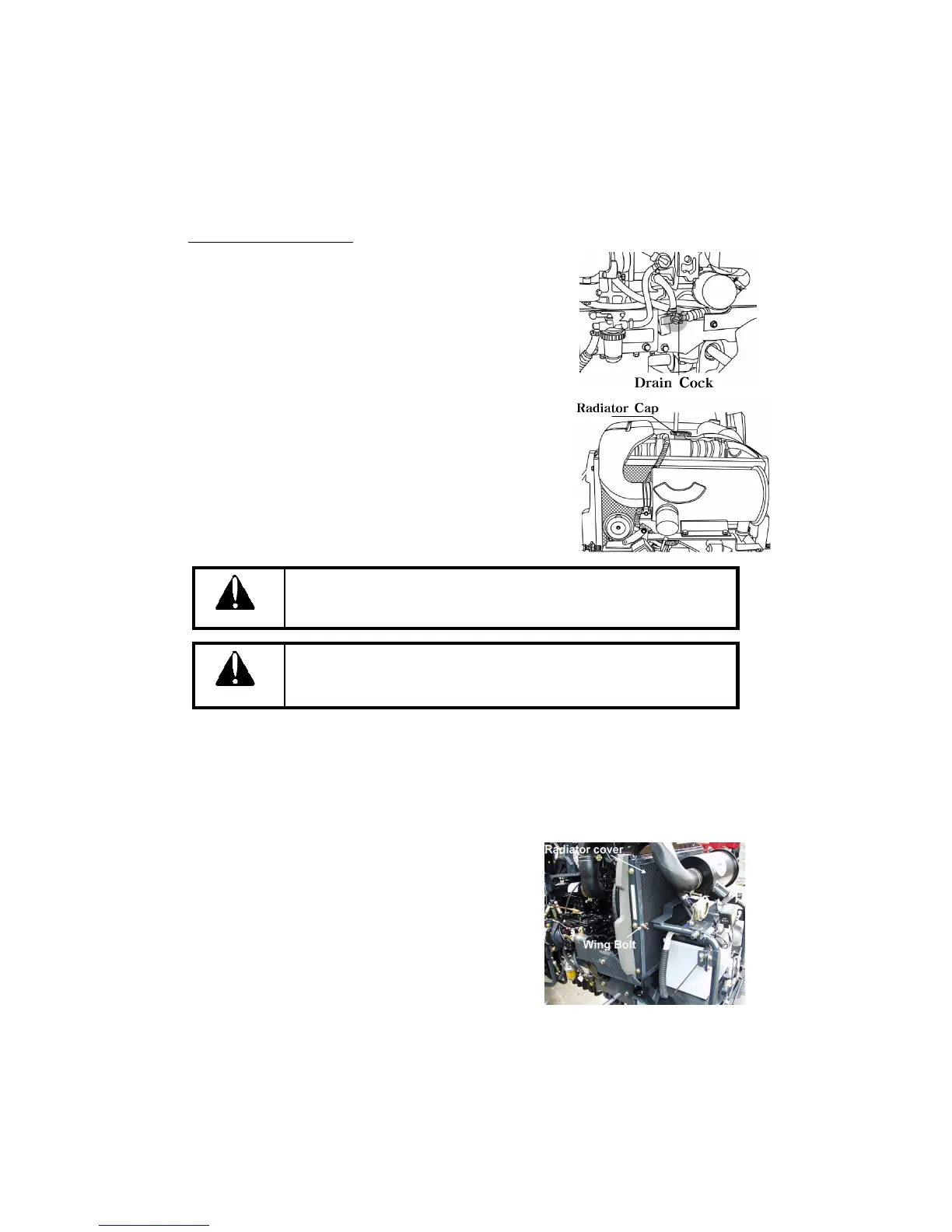 Allow the engine to cool down completely before opening radiator cap.