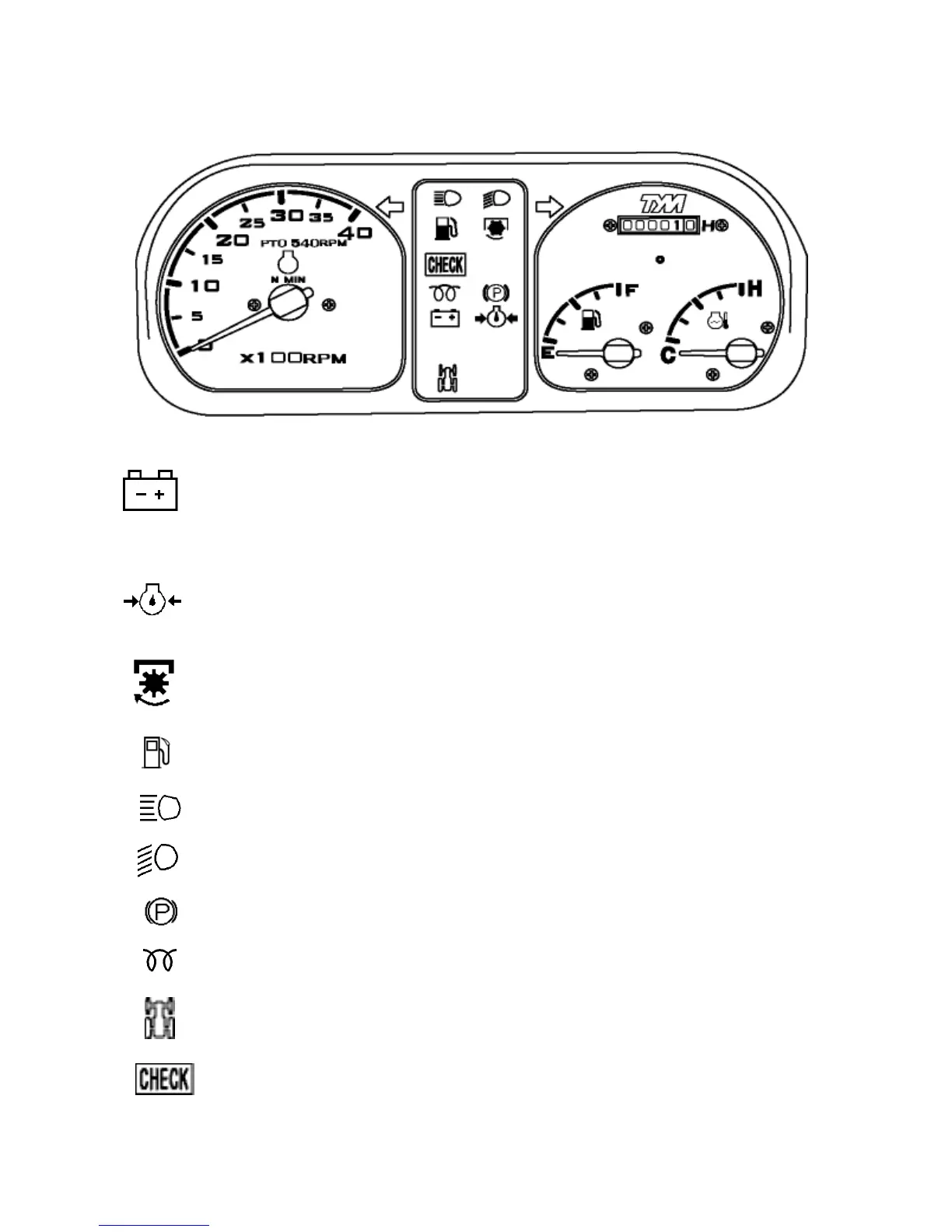 Fuel Level : If it comes on while the engine is running, Fill the tank with fuel.