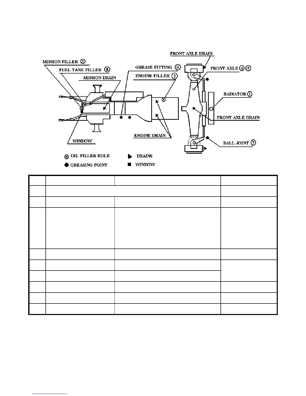 4 FRONT AXLE Gear oil #80 or #90 (API GL-4 grade) 8.2ℓ(2.166US gal)