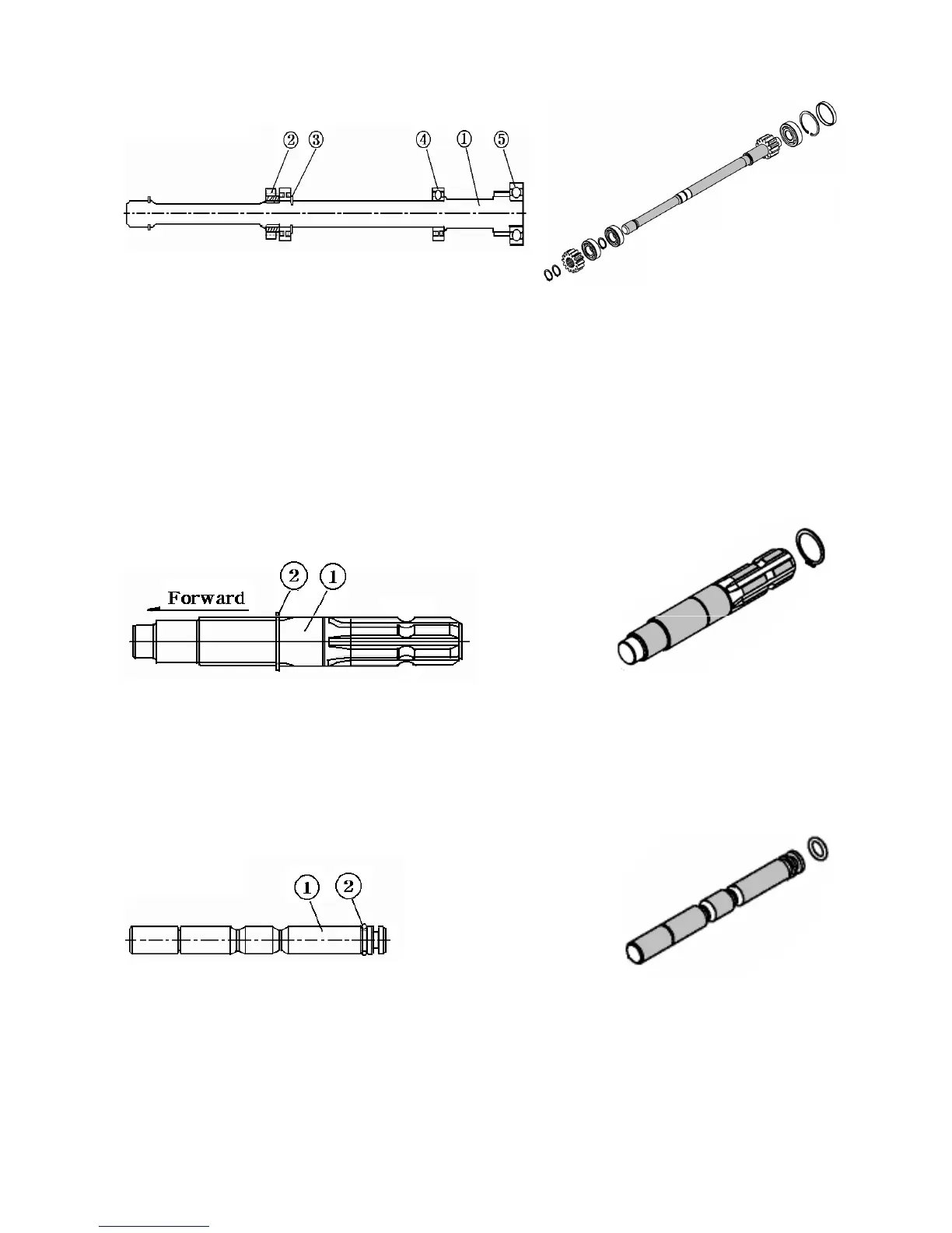 1.Gear,spur 12 2.Gear spur 14 3. Snap ring(shaft) 4. Ball bearing(6205) 5. Ball bearing(6305)