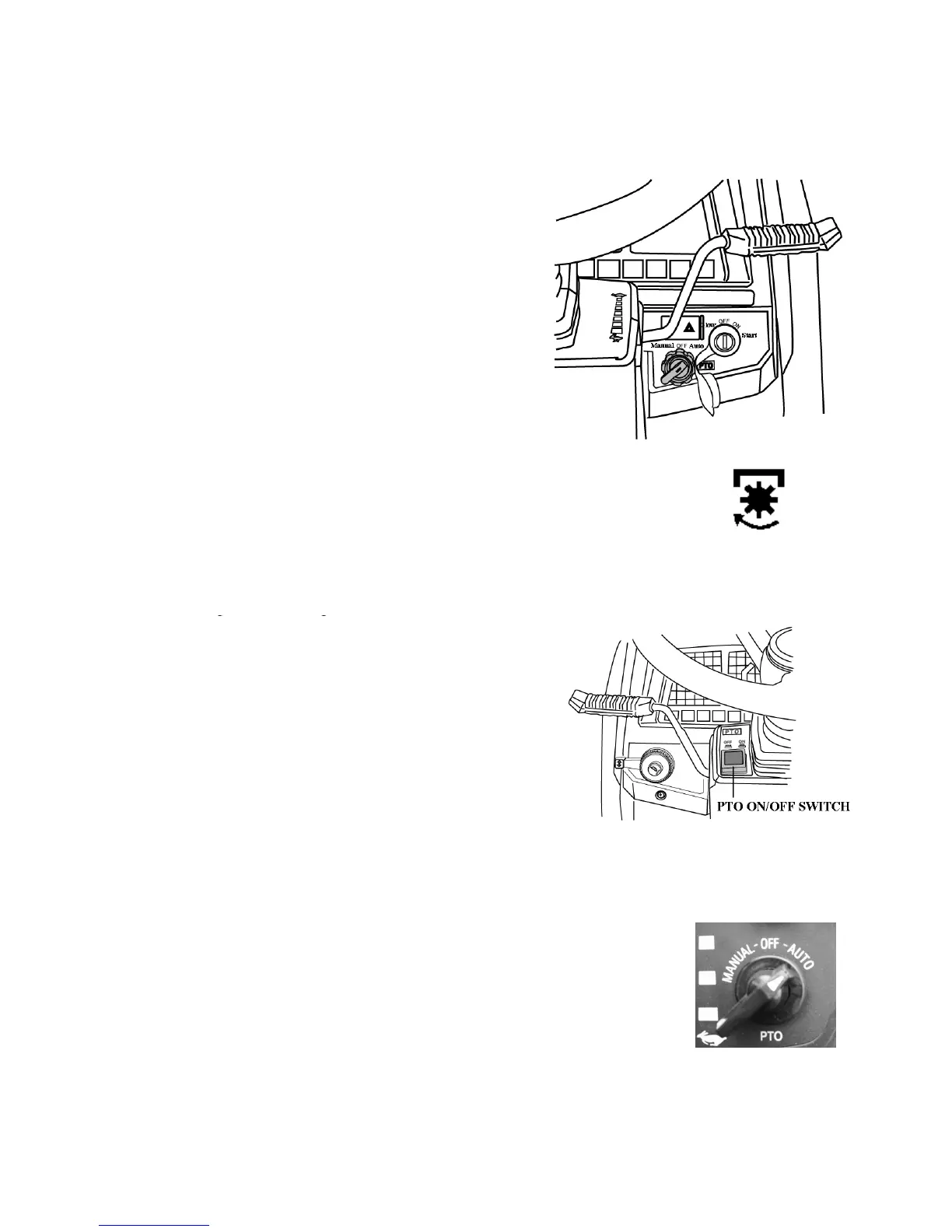 & Auto) positions of the PTO control switch with the PTO ON/OFF switch in the