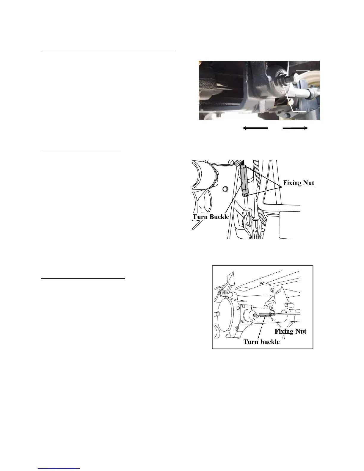 Loosen the locknuts at each end and turn the rod to adjust the brake.
