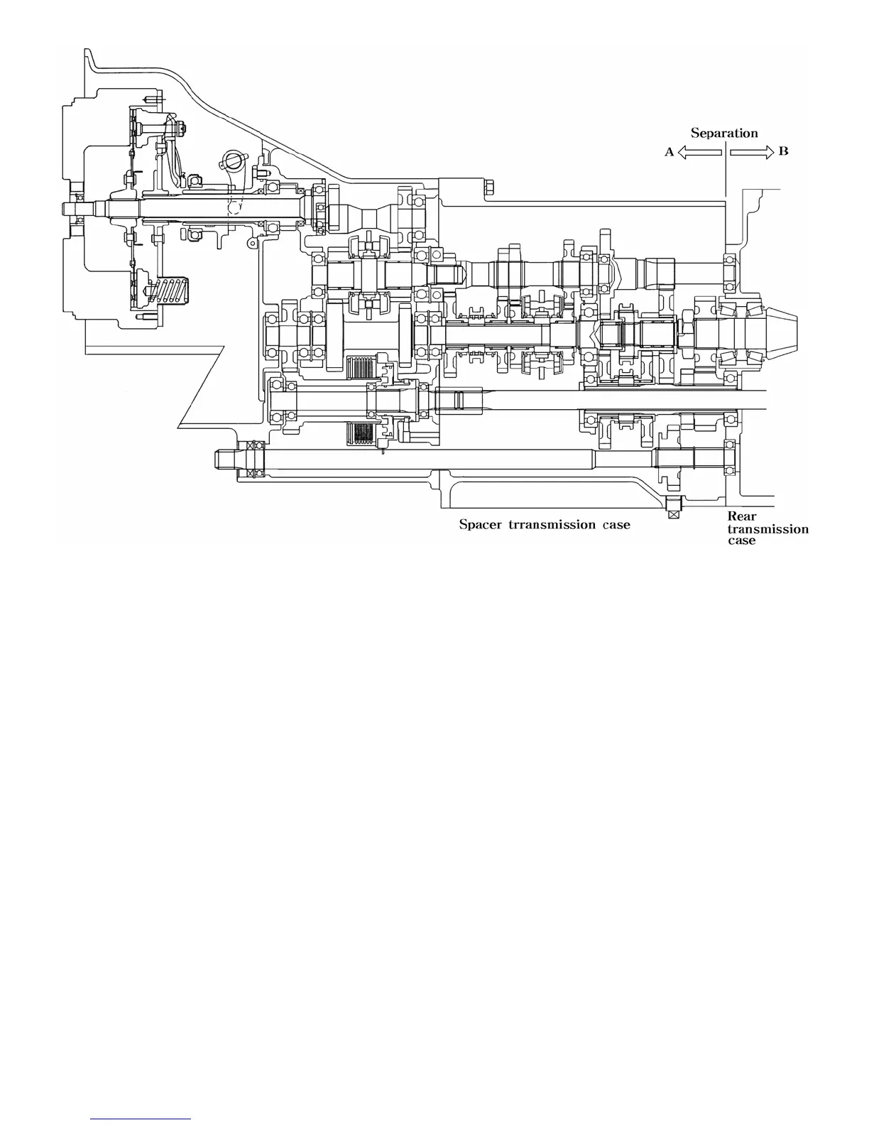 With this operation,the transmission is divided into parts A and B part A includes main speed shift and