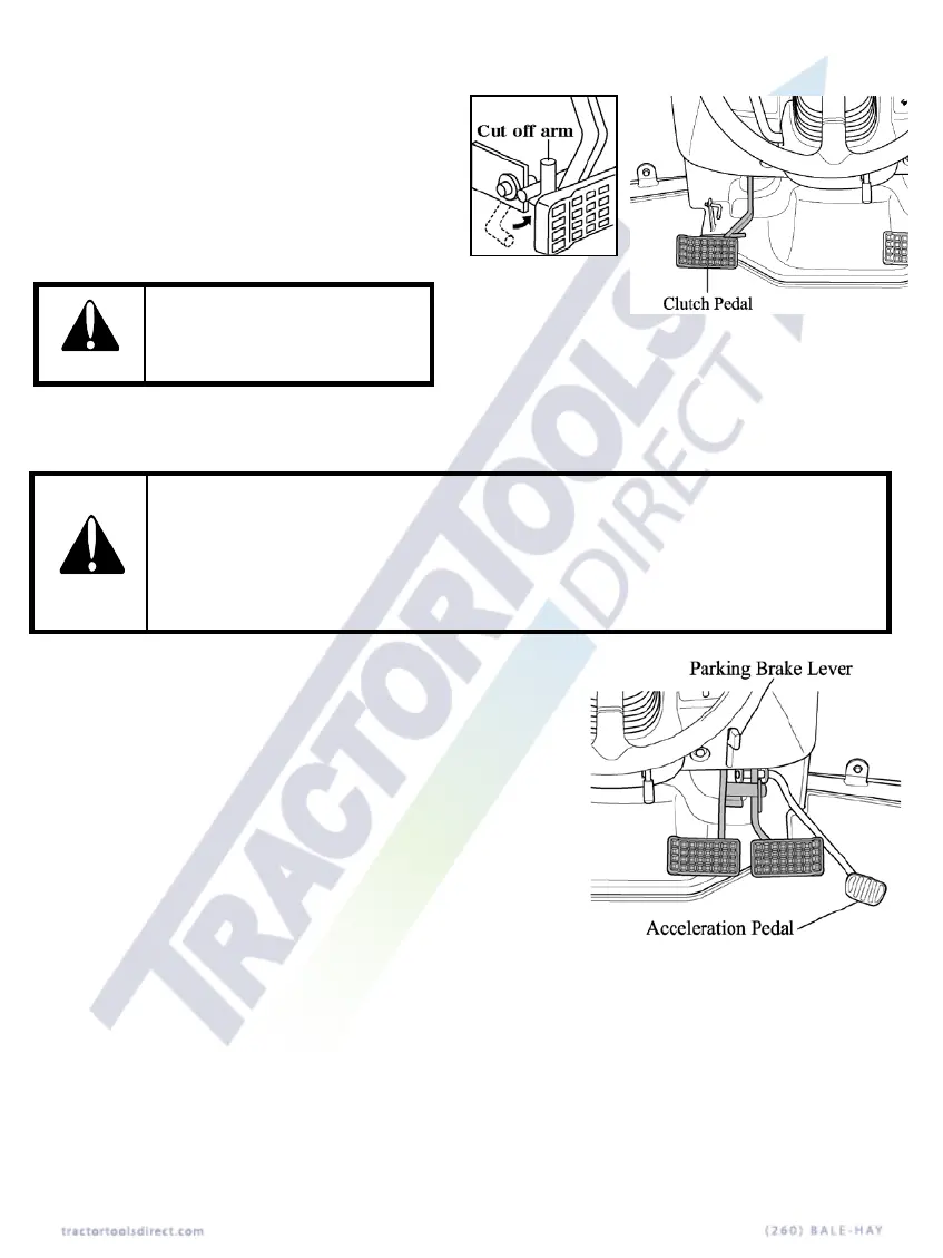 Right and left brake pedals are provided to assist in turning the tractor in the field.