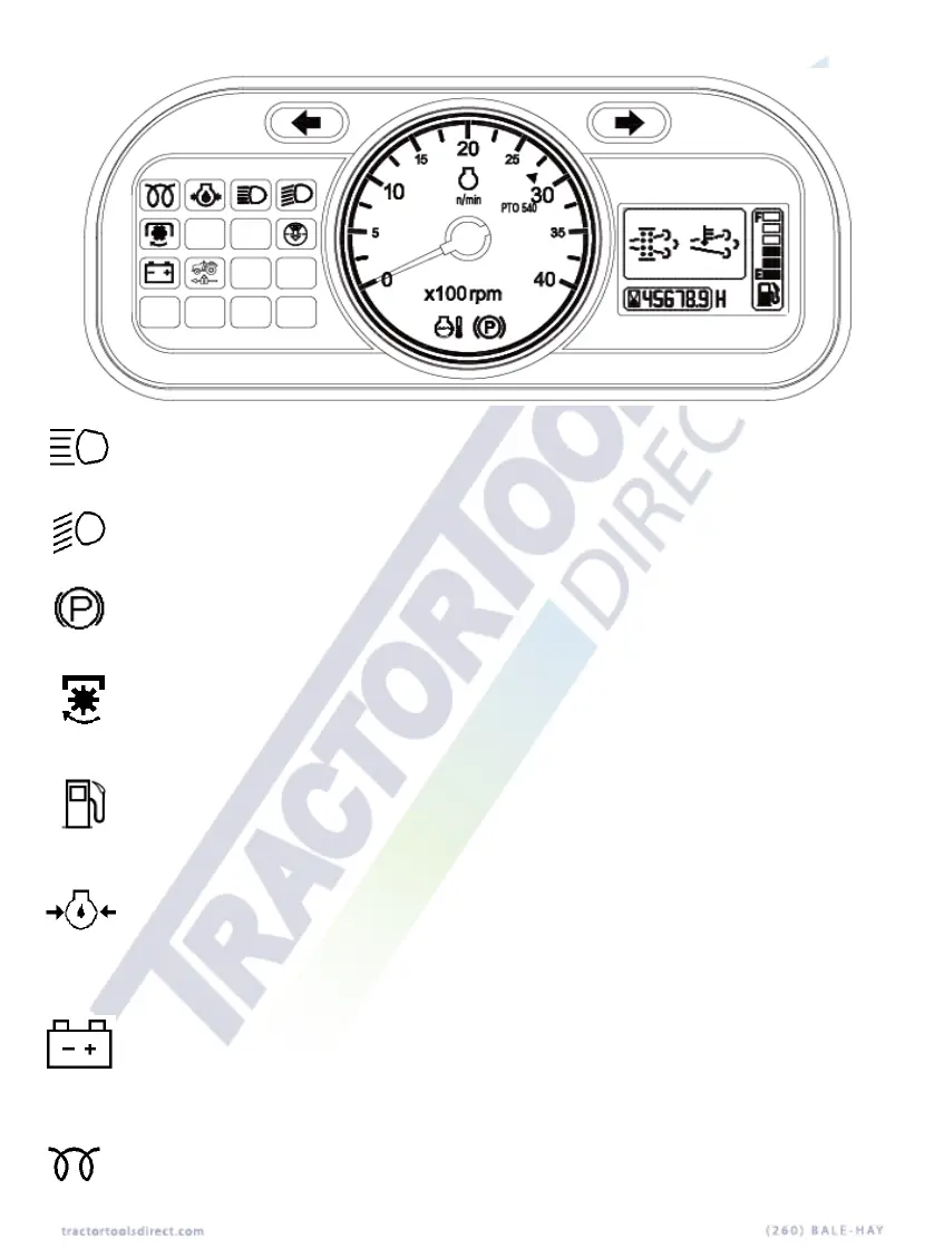 Shows the revolution of PTO. Refer to monitor lamp on Page 40