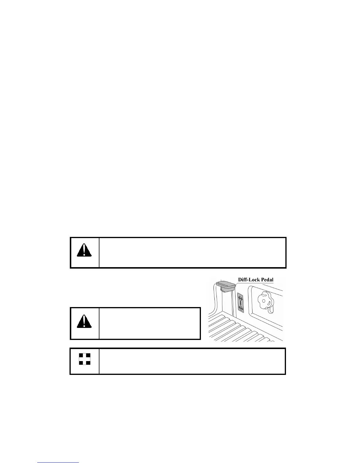 Do not use high engine RPM when engaging Diff lock If the diff lock does not