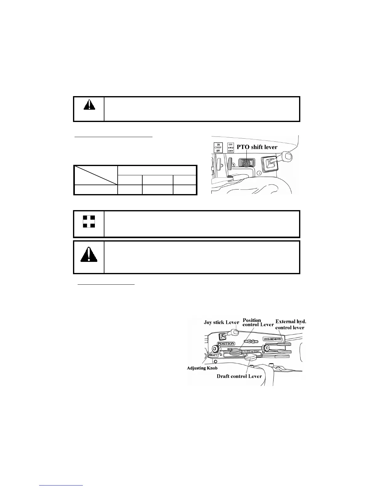 Always use the clutch when engaging or disengaging the PTO or changing PTO