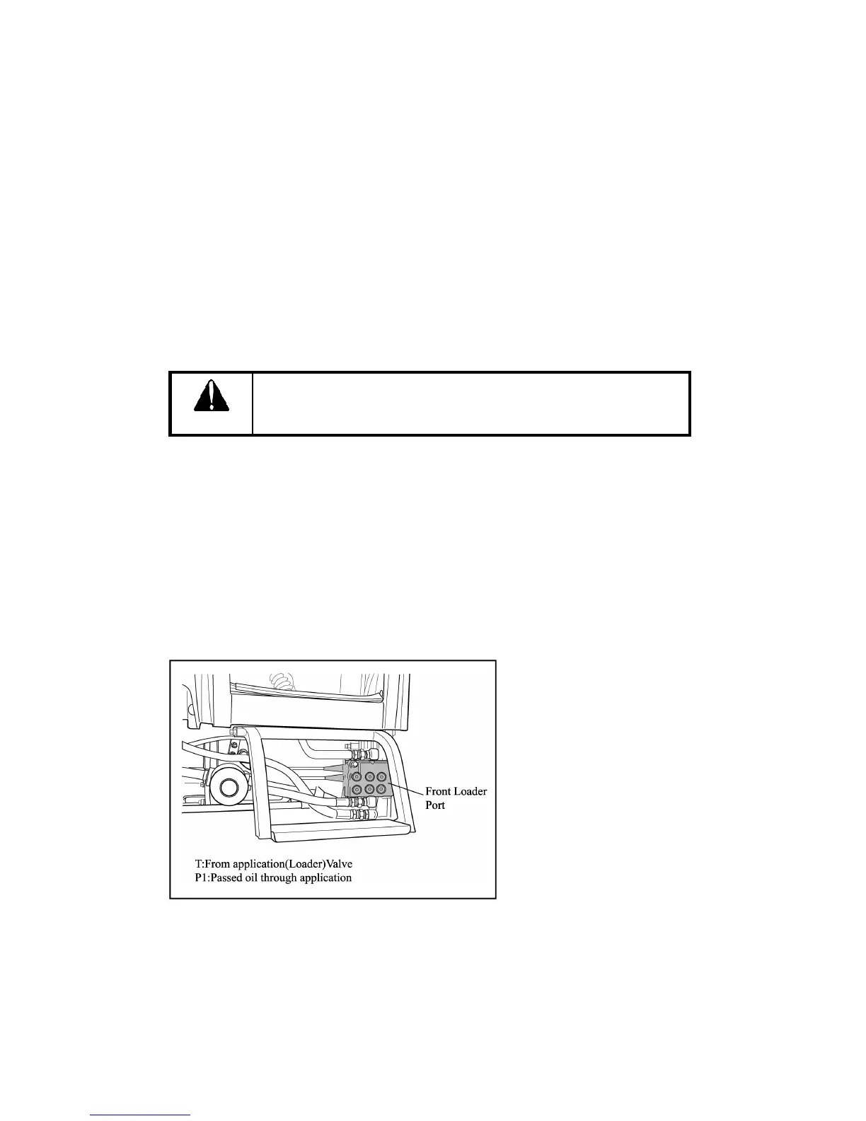 1.Connect P port of loader control valve to the line on the tractor marked P(from the PTO valve)