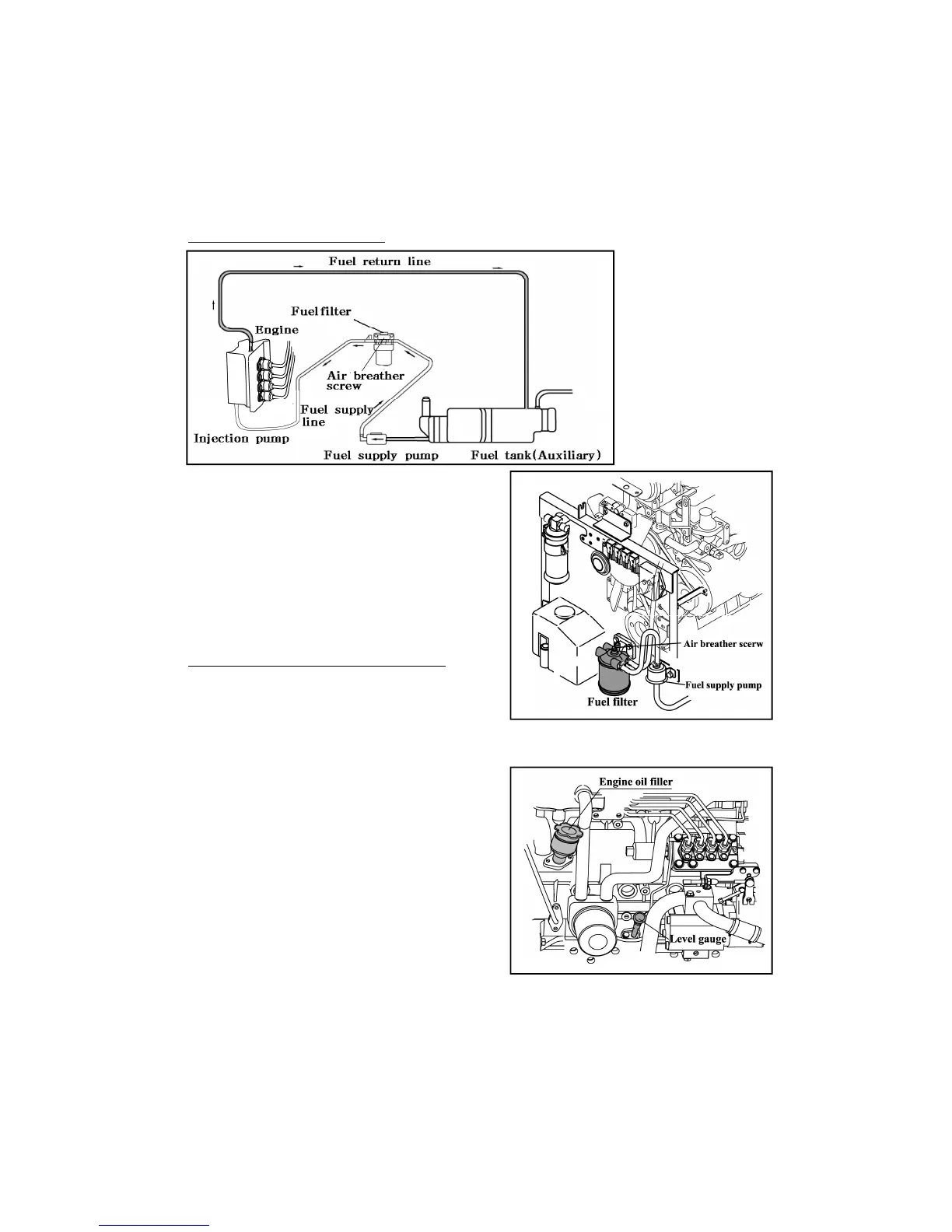 2) Loosen the air breather screw of the fuel filter
