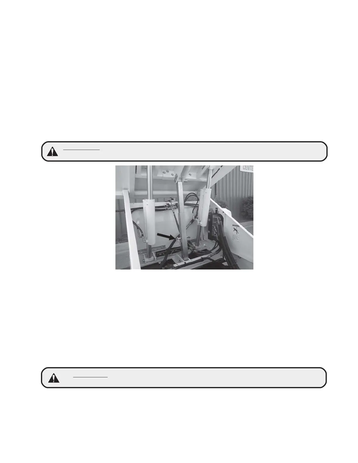 5. At end of shift, raise hopper and install pin in safety strut. Wash out hopper,hop-
