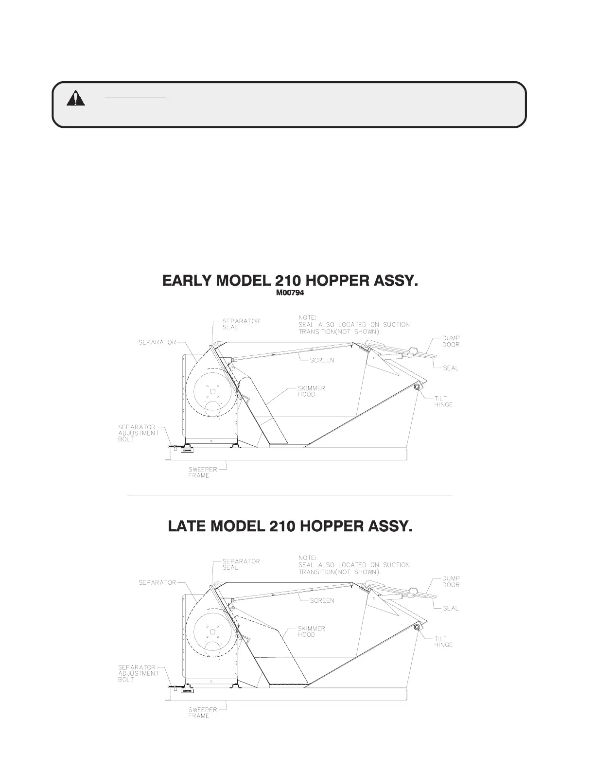 2. Hopper Seals - The hopper must be maintained air tight for the sweeper to