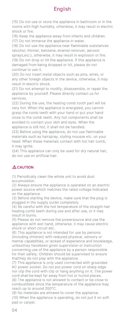 (24) This appliance can only be used for dry natural hair,