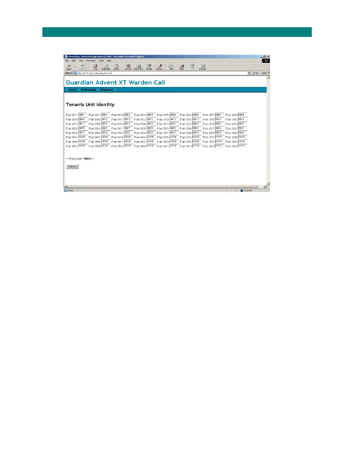FromtheProgrammingmenu,select“TenantsUnitIdentity”toprogramtheflatnumberstotheintercoms;