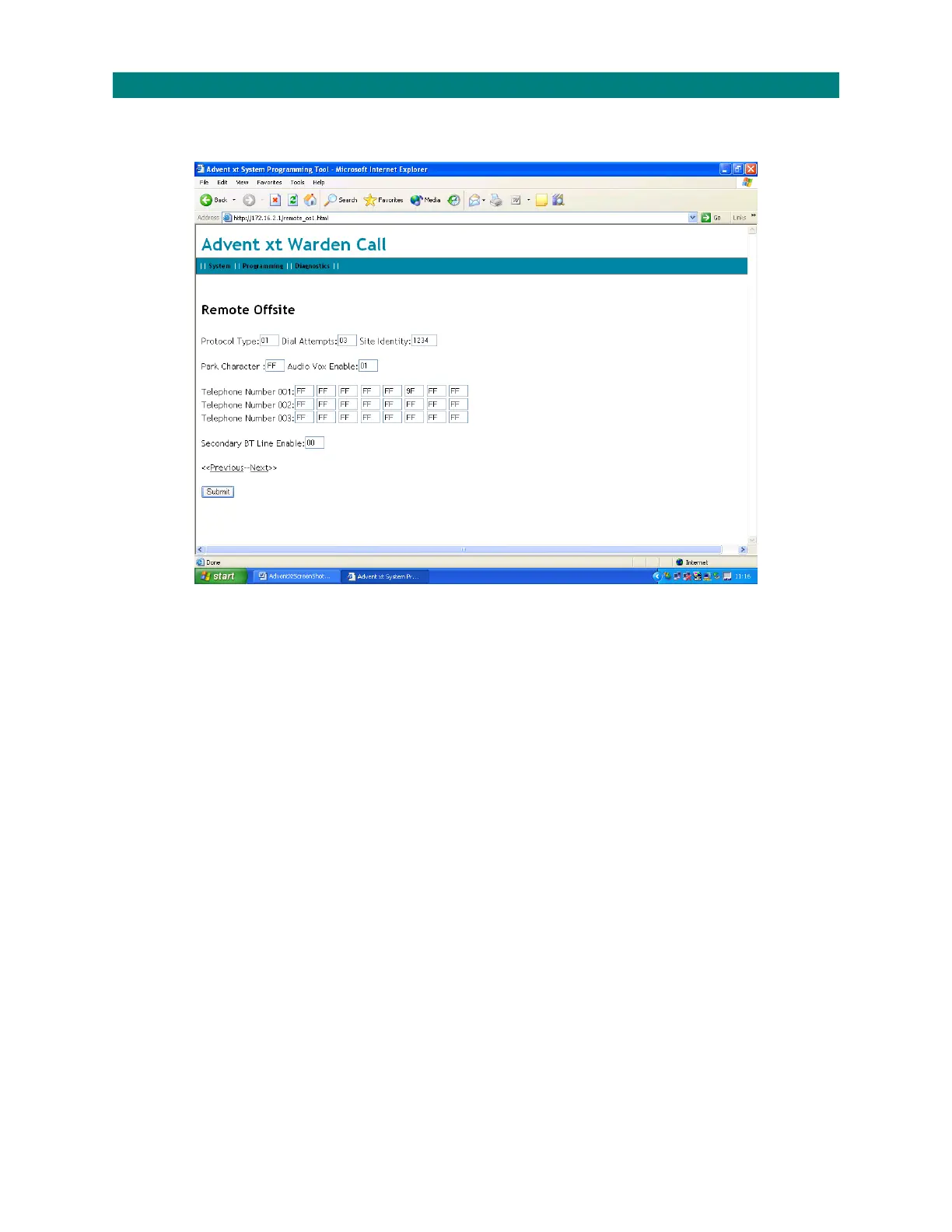 SiteIdentity:entertheuniquesiteidentitynumberissuedbythecontrolcentre,max4digits.