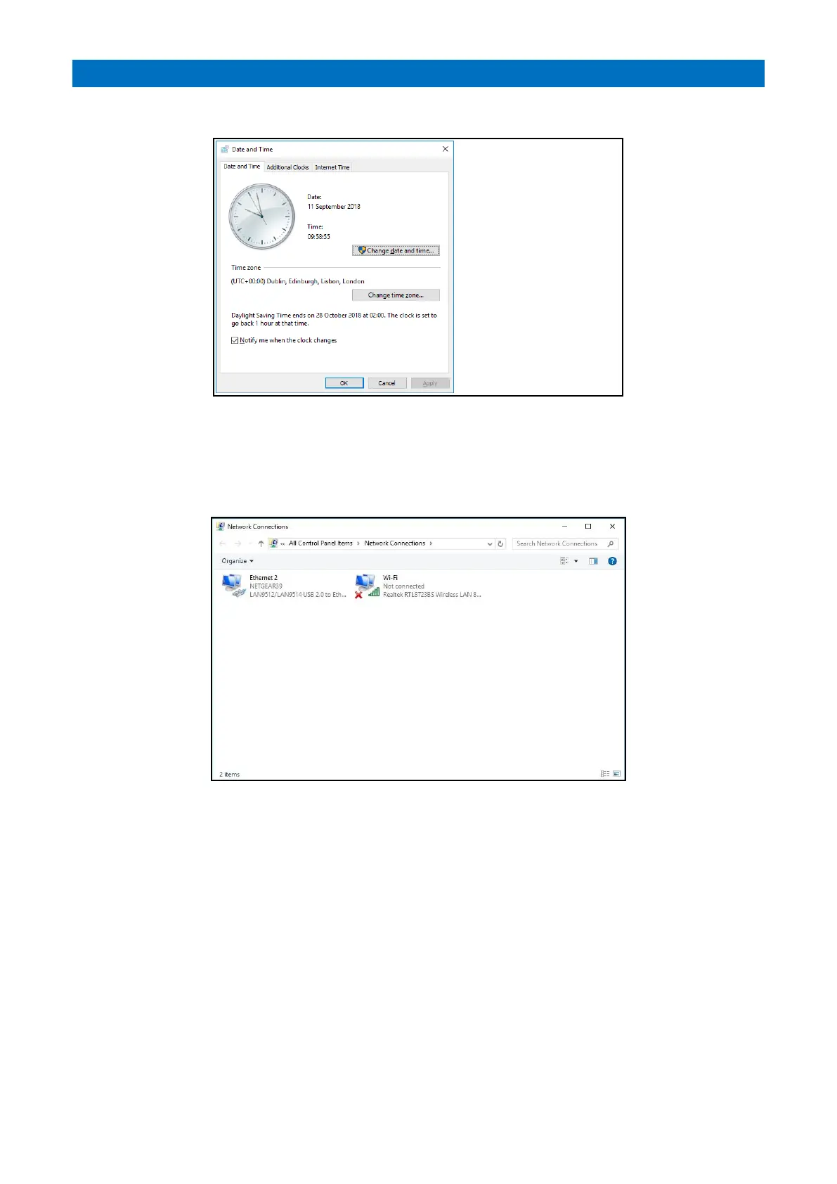 The Windows 10 Network Connections window is used to setup the IP address via the Ethernet Internet Protocol