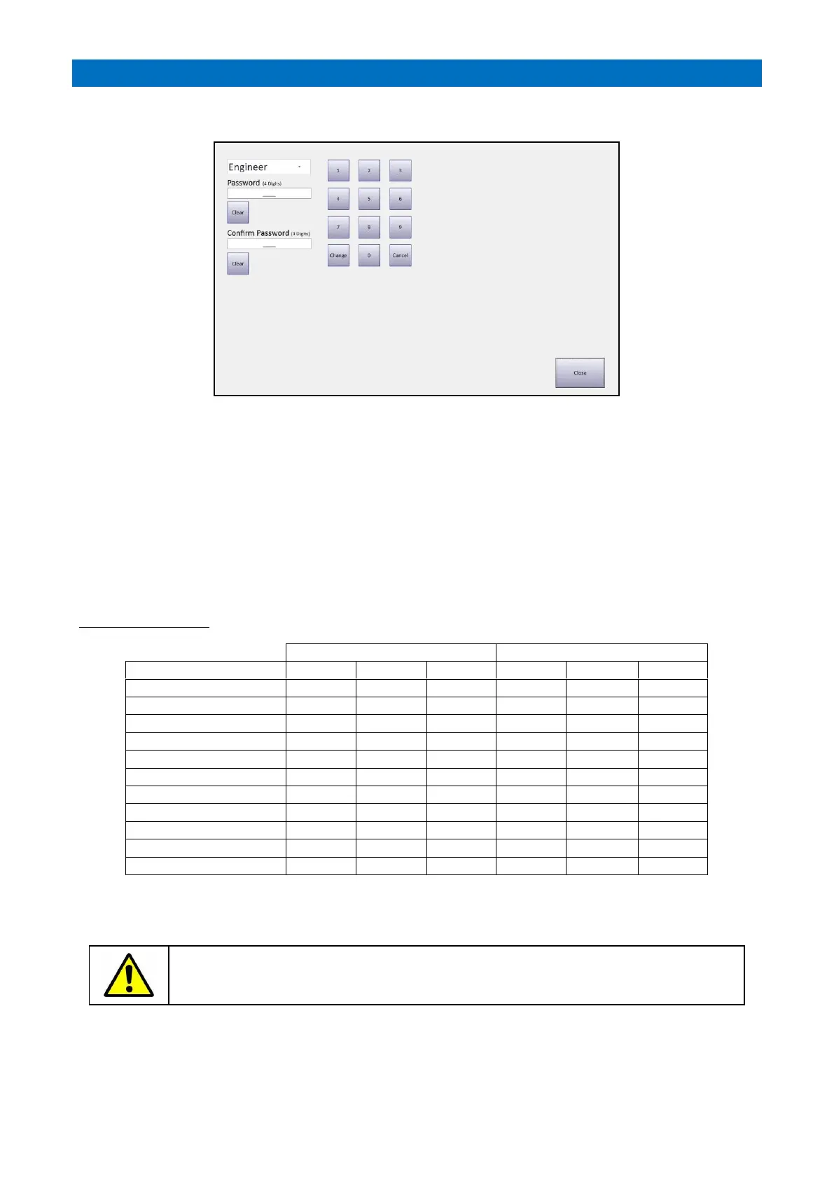 Select the Password to be changed from the drop-down menu (Engineer, Manager or User).
