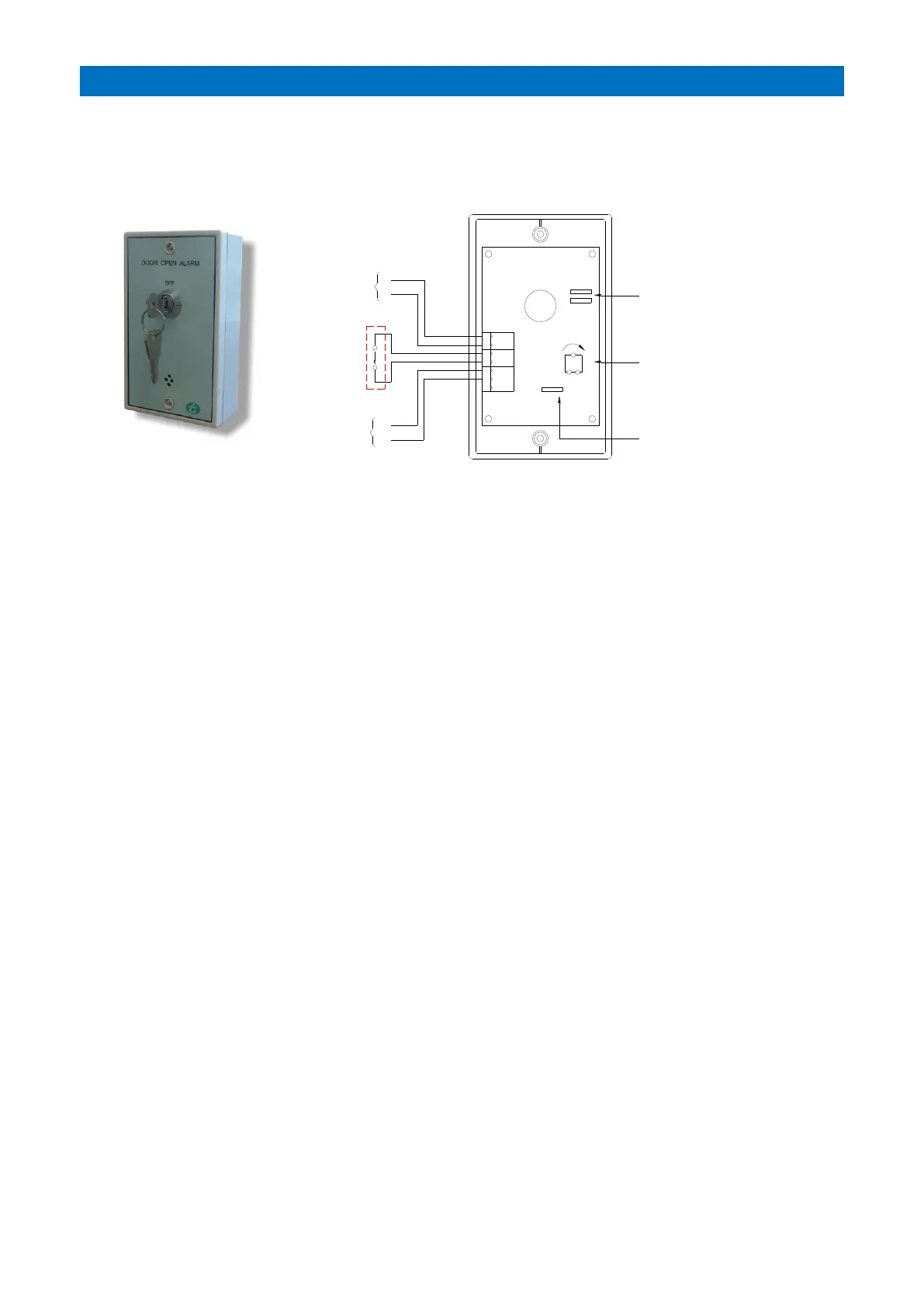Fix the Door Open Alarm alongside the monitored door at a height where the isolation key switch can easily be