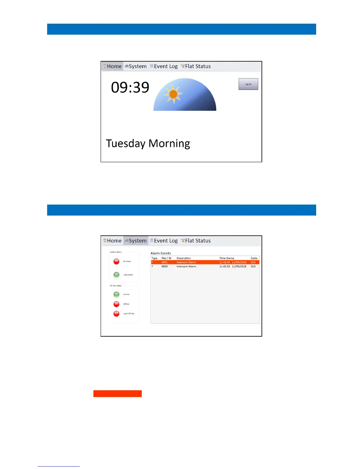There are 3 other tabs along the top of the screen to select System, Event Log and Flat Status.