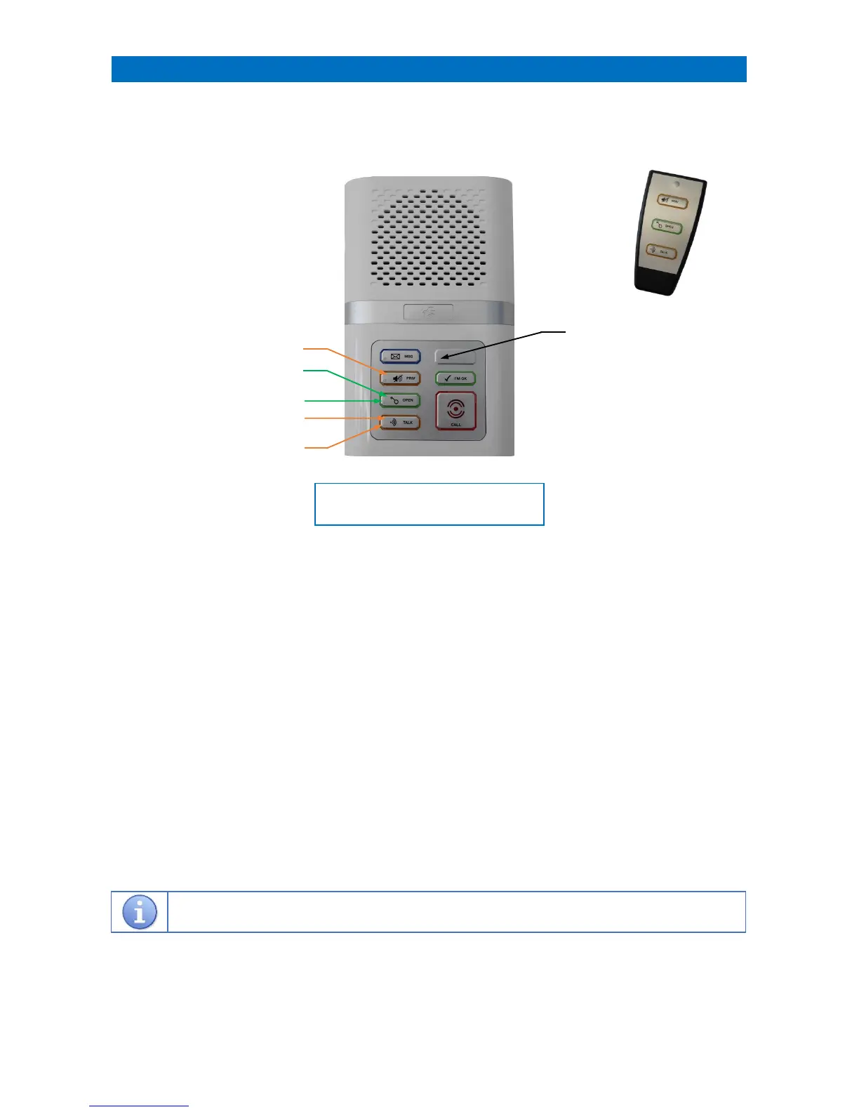 answer a call from the door and to release the door lock. An optional remote control is available for use with door