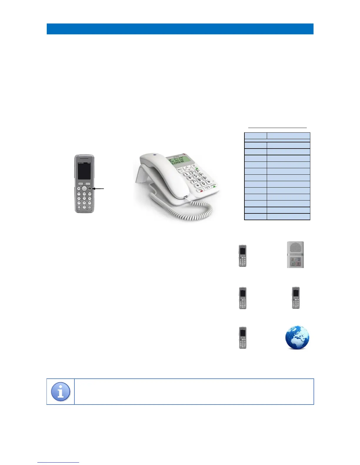 Note: it is not possible to make internal calls to/from desktop telephones