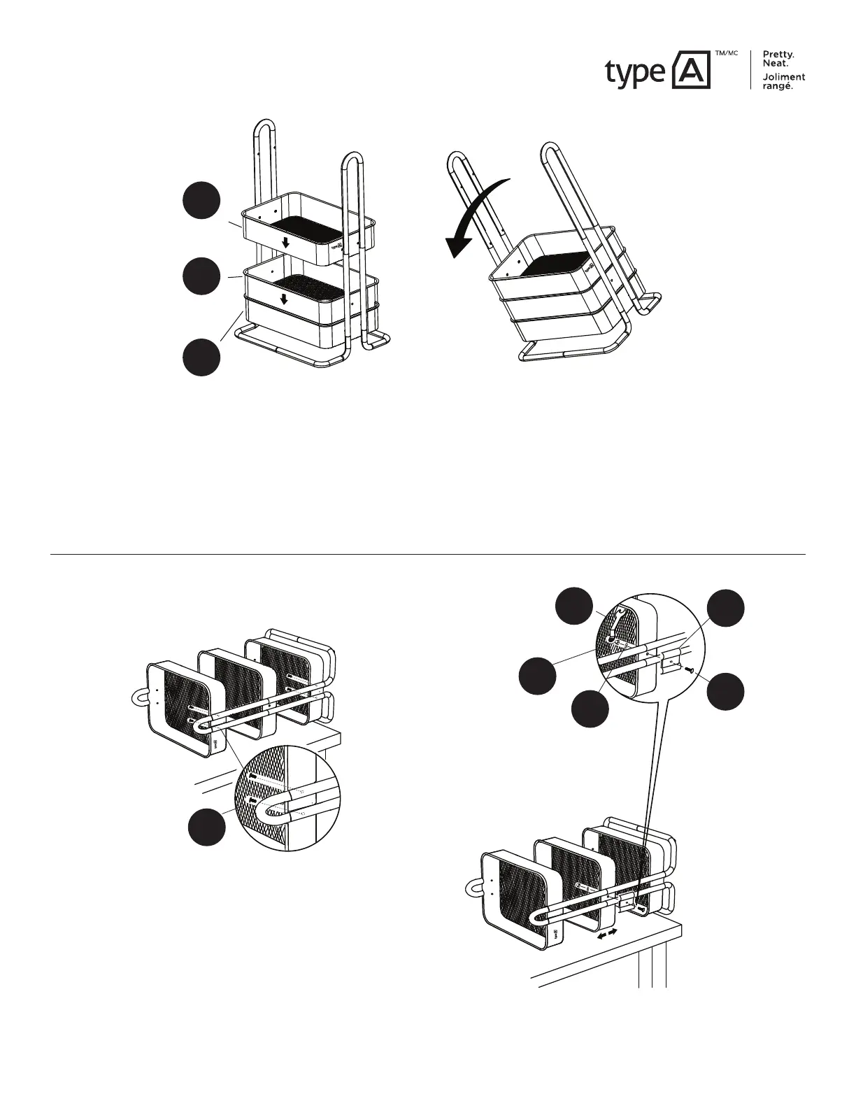 la tablette supérieure (A) porte le logo « Type A »; la tablette