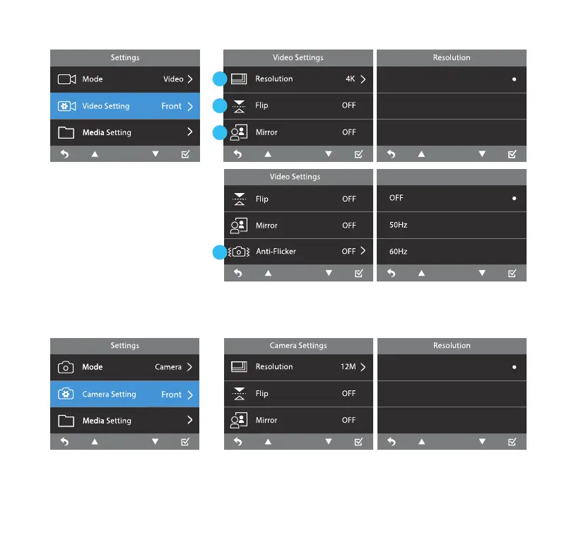 12M (4608 x 2592), 8M (3840 x 2160) and 5M (3072 x 1728). Other settings are similar to Video Settings.