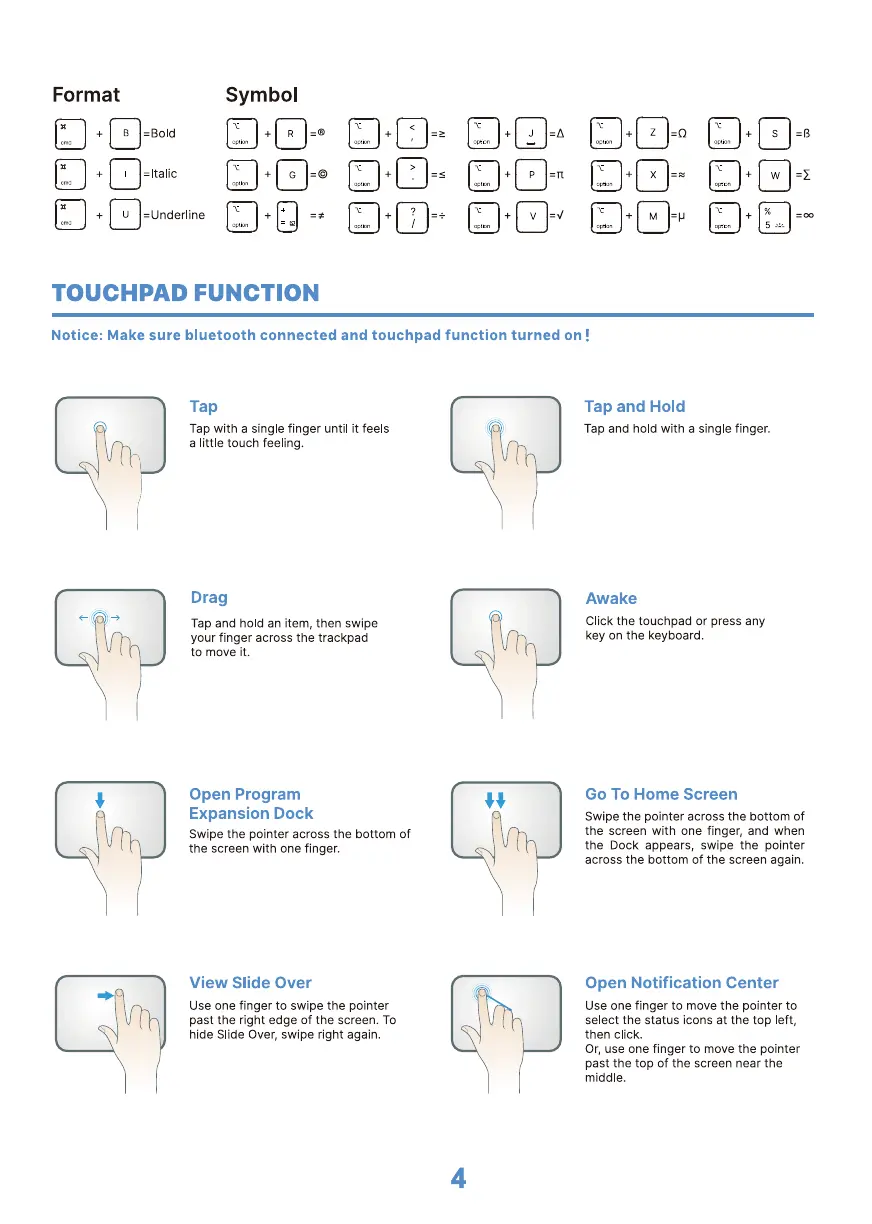 Notice: Make sure bluetooth connected and touchpad function turned on !