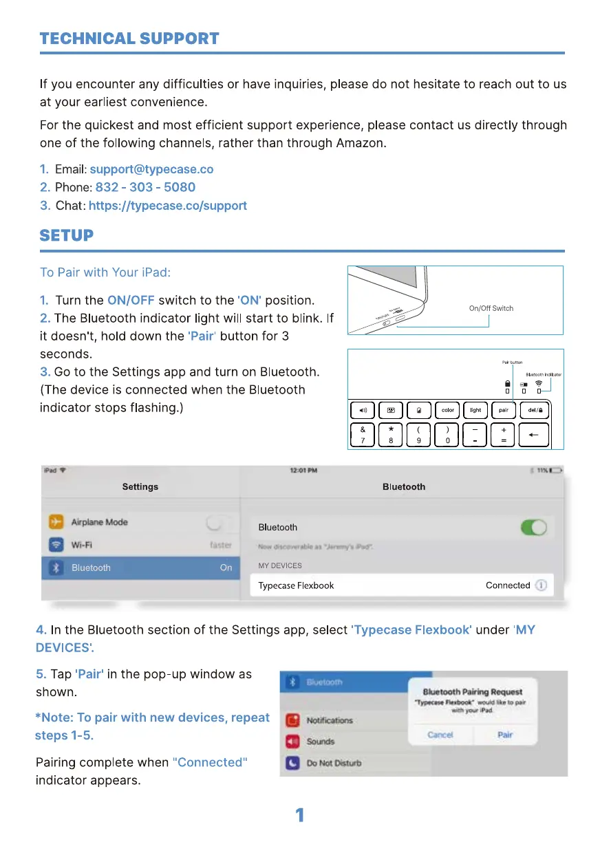 In the Bluetooth section of the Settings app, select 'Typecase Flexbook' under