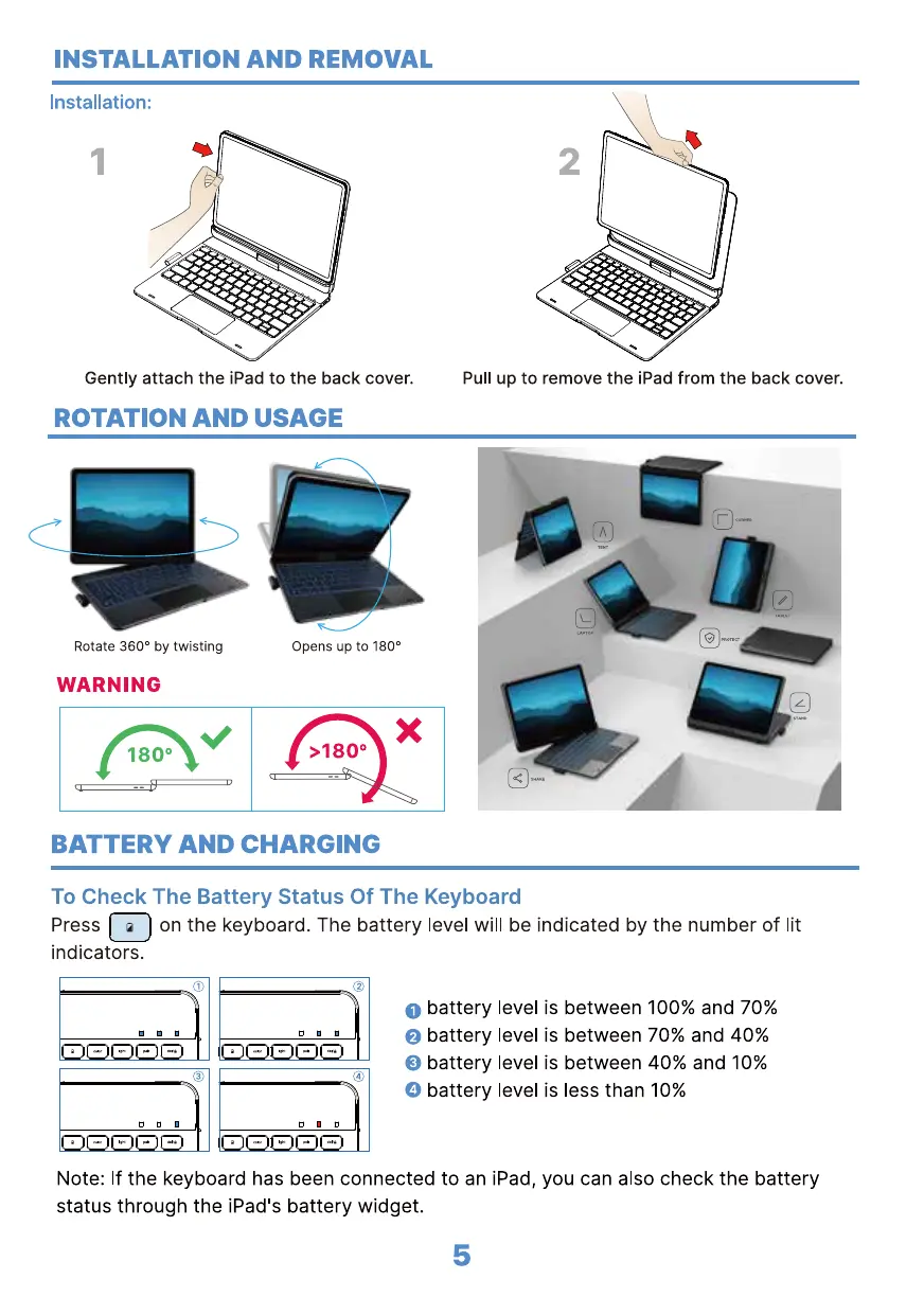 Note: If the keyboard has been connected to an iPad, you can also check the battery